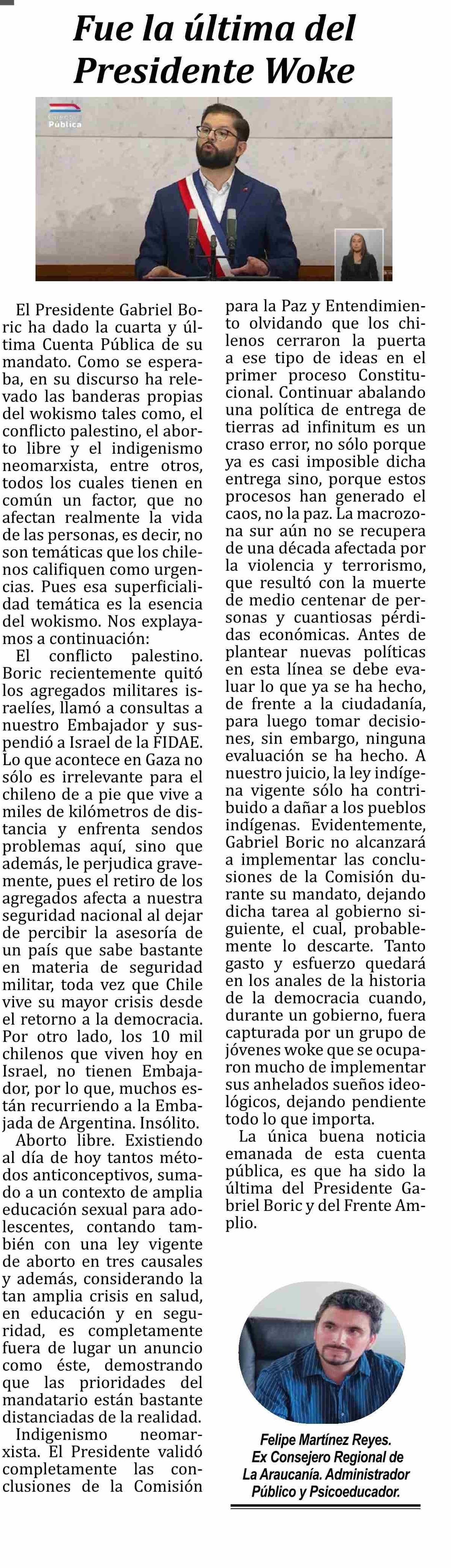Fecha: 03-06-2025 Sector: Columnas de Opinión Región: Región de la Araucanía
