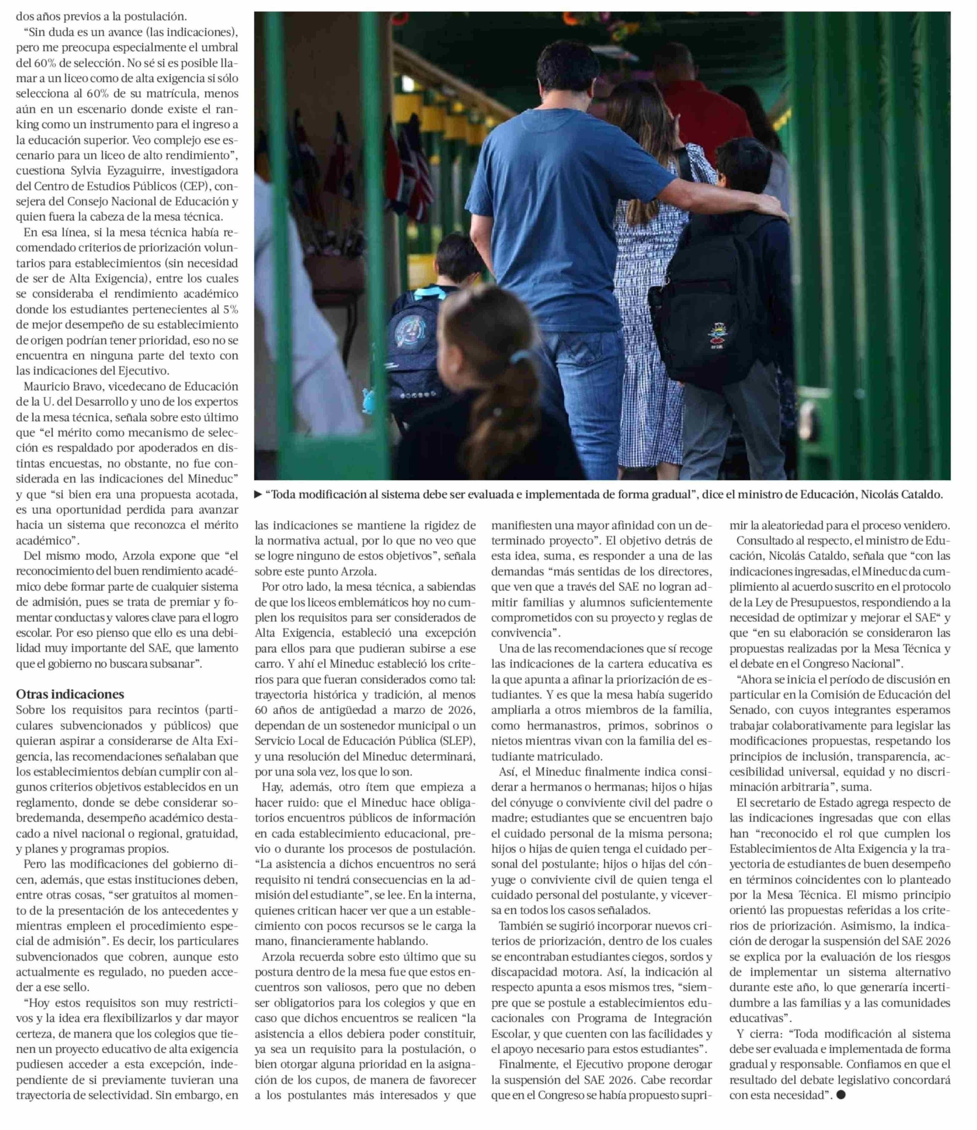 Indicaciones de gobierno acogen a medias recomendaciones sobre reposición de selección escolar