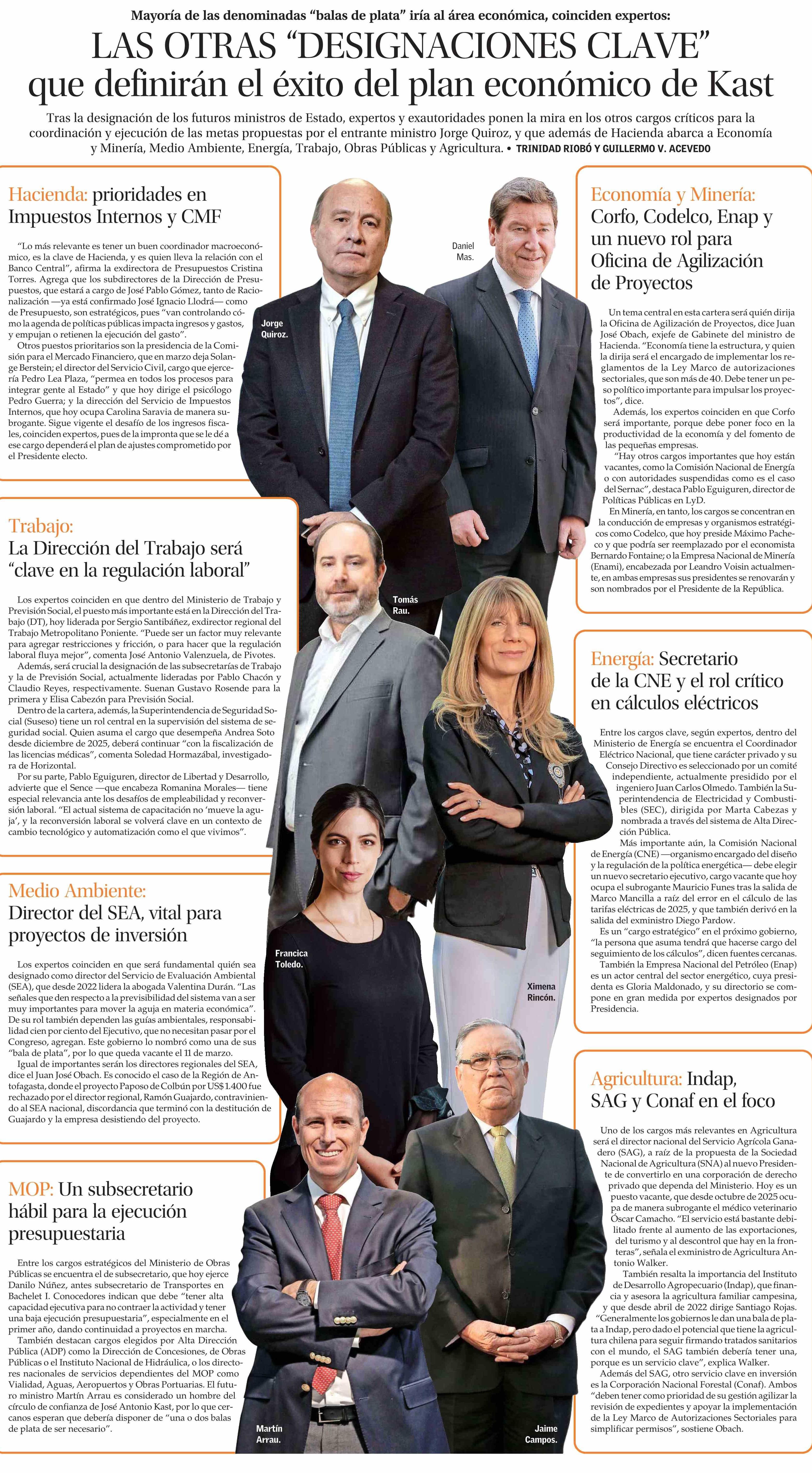 Título: LAS OTRAS “DESIGNACIONES CLAVE” que definirán el éxito del plan económico de Kast