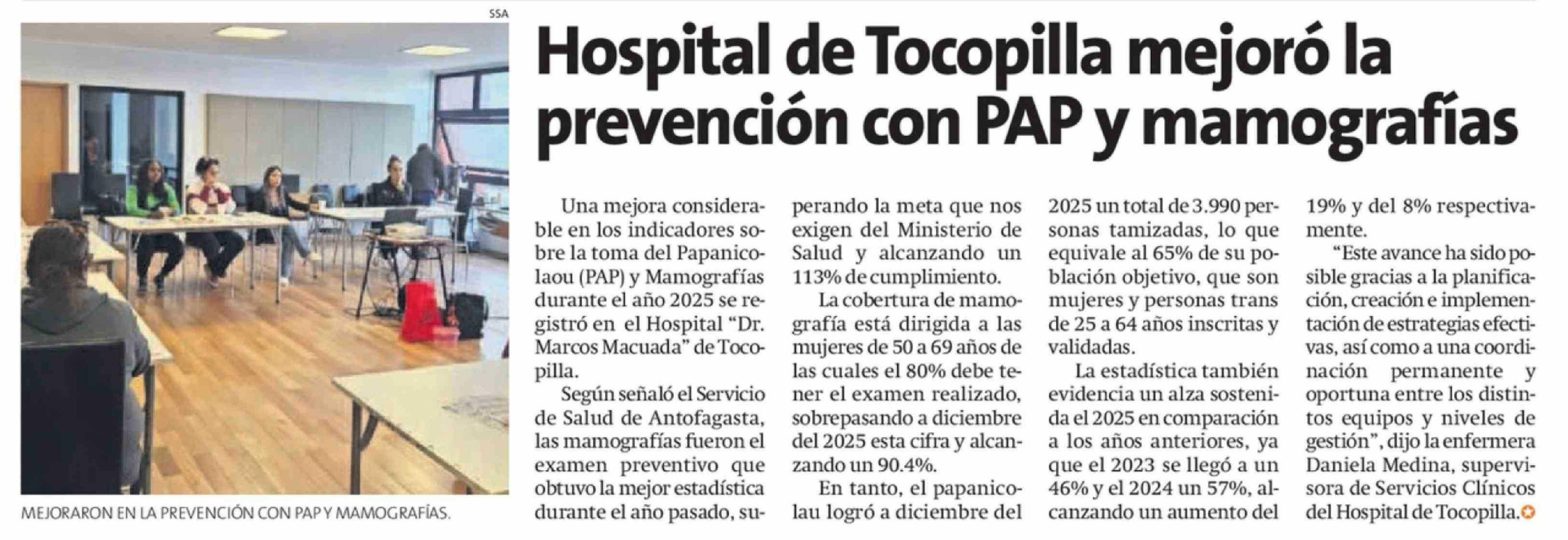 Hospital de Tocopilla mejoró la prevención con PAP y mamografías
