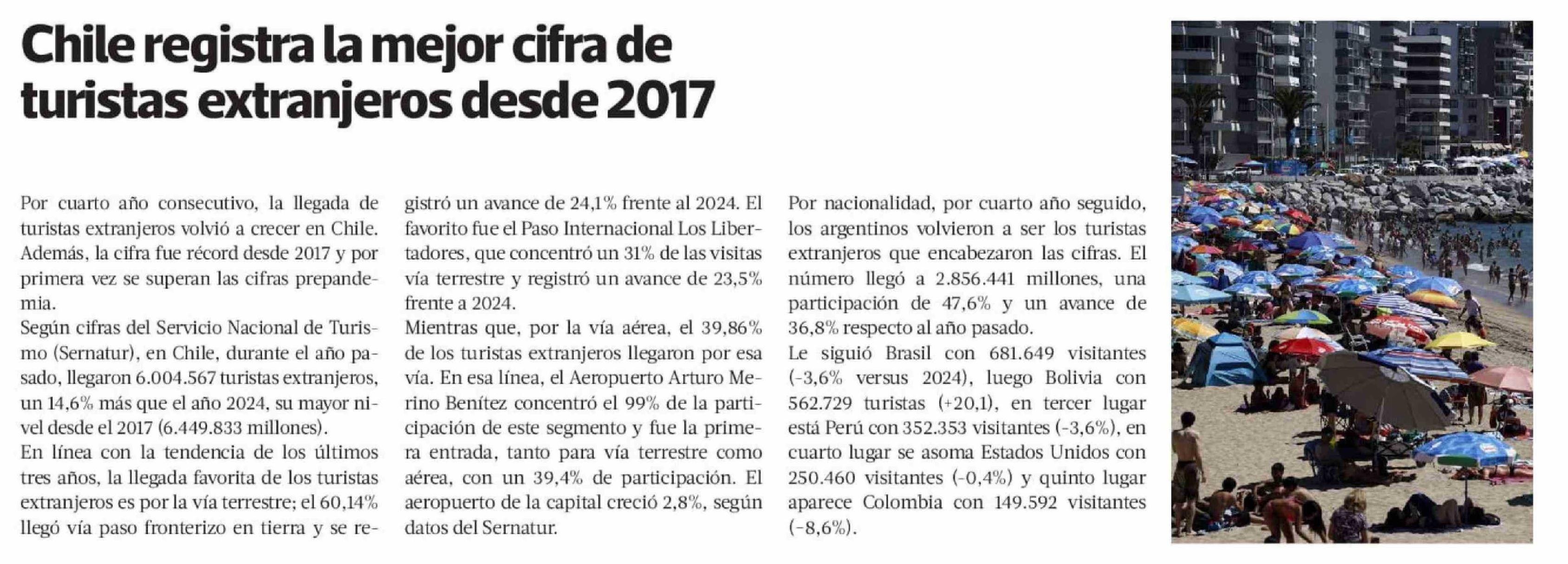 Chile registra la mejor cifra de turistas extranjeros desde 2017