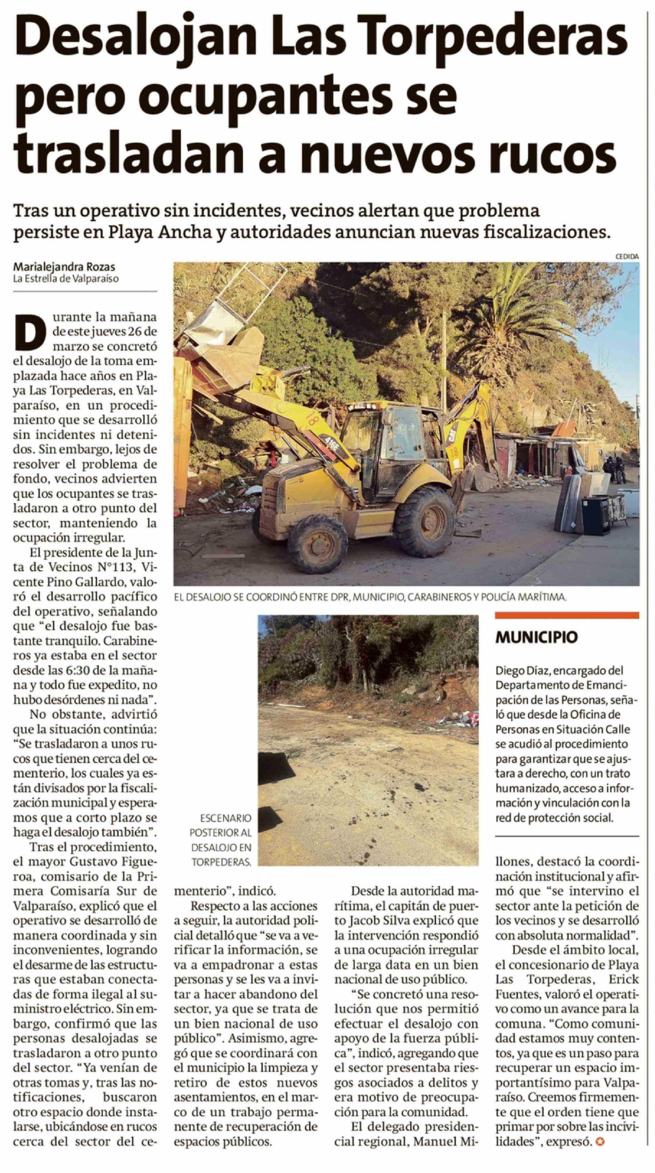 Desalojan Las Torpederas pero ocupantes se trasladan a nuevos rucos