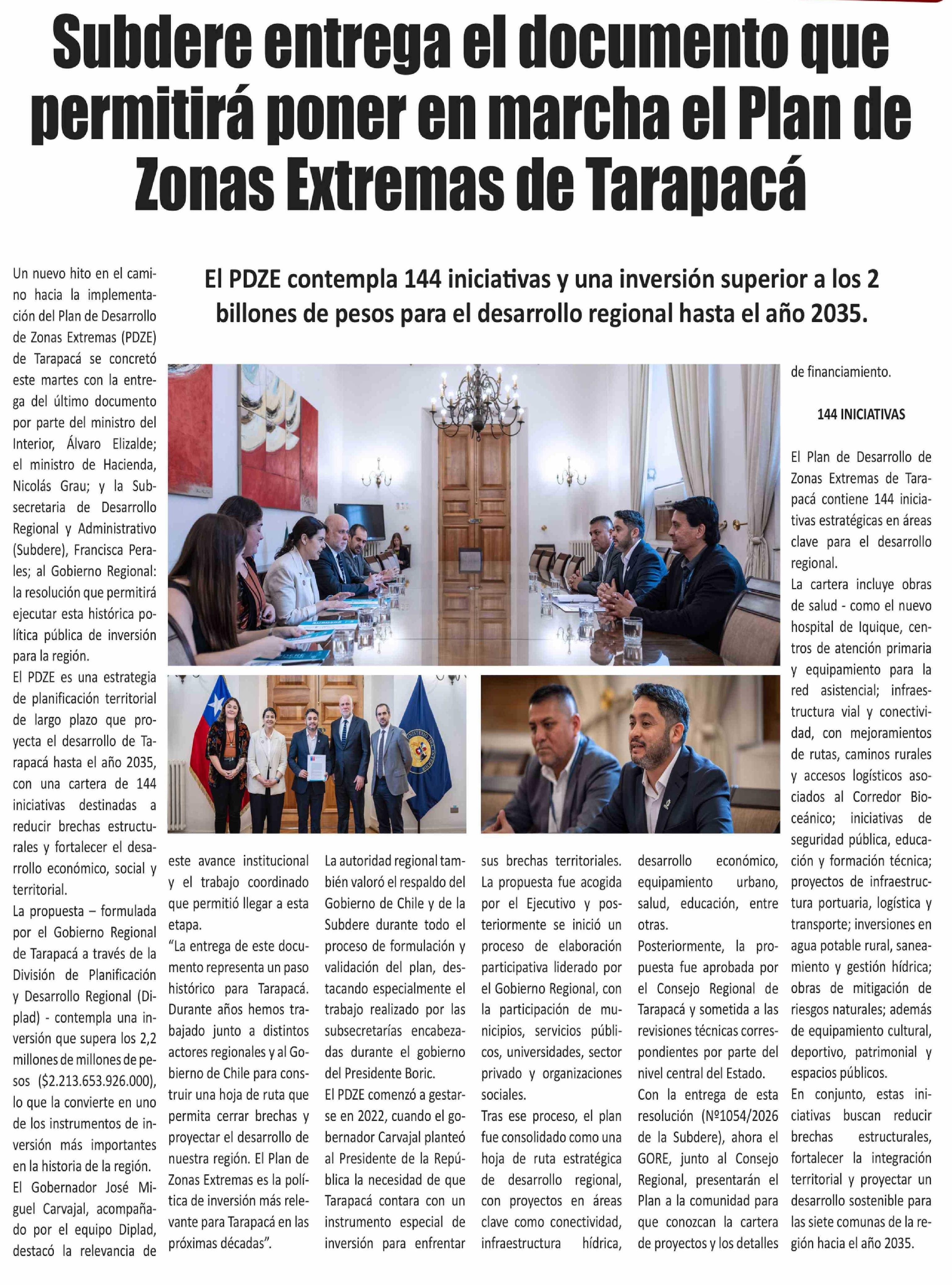 Subdere entrega el documento que permitirá poner en marcha el Plan de Zonas Extremas de Tarapacá