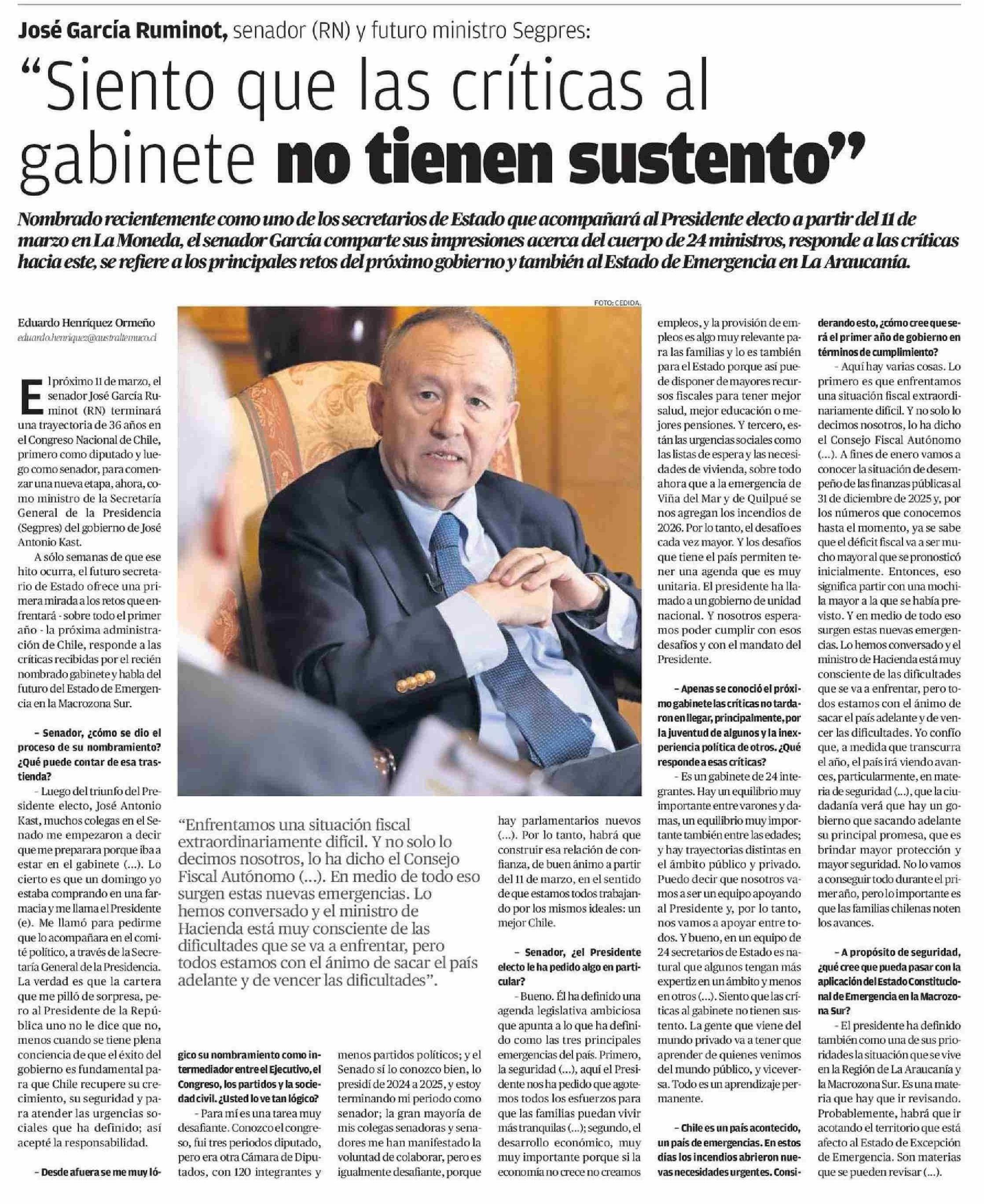 "Siento que las críticas al gabinete no tienen sustento"