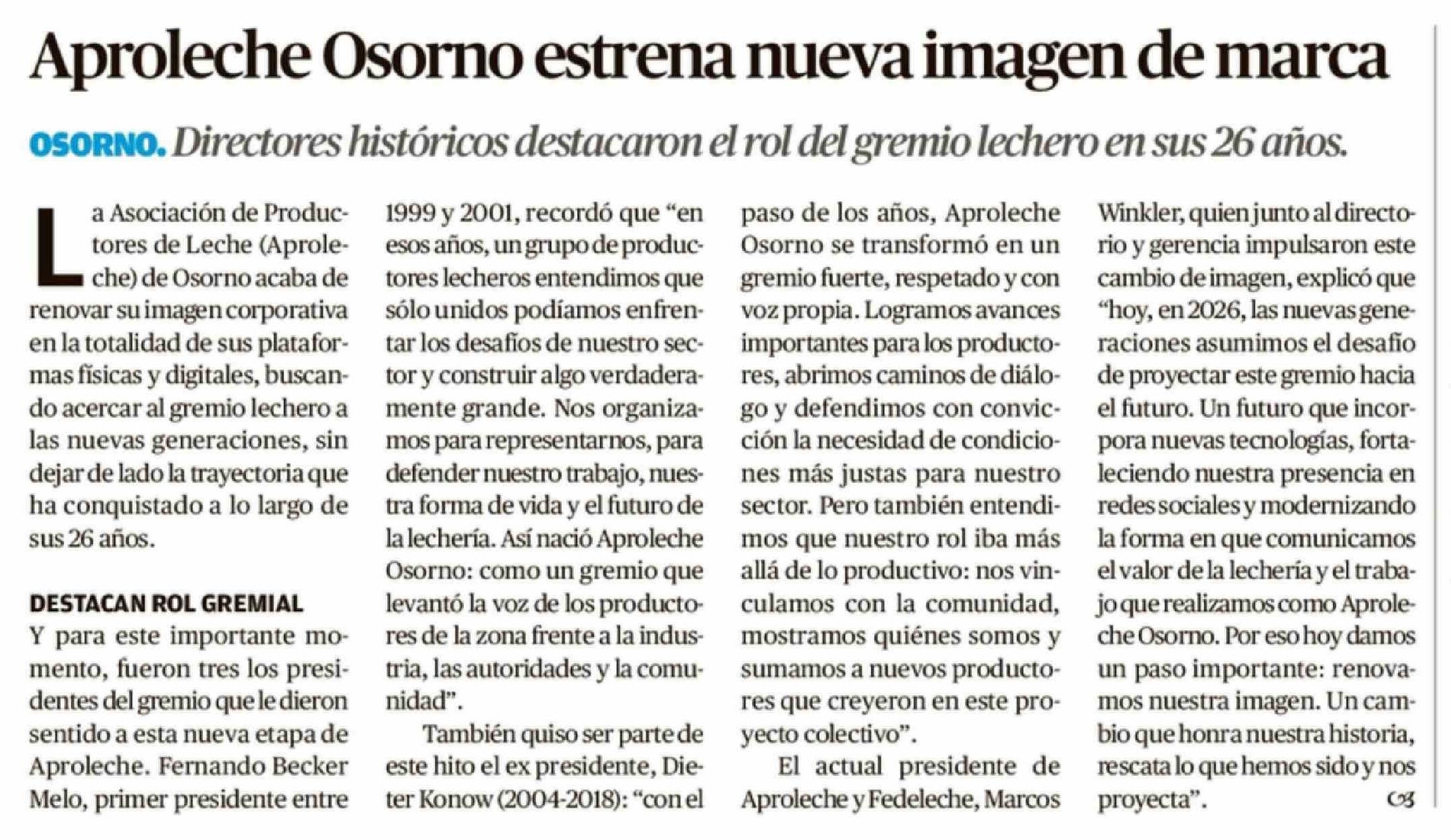 Aproleche Osorno estrena nueva imagen de marca