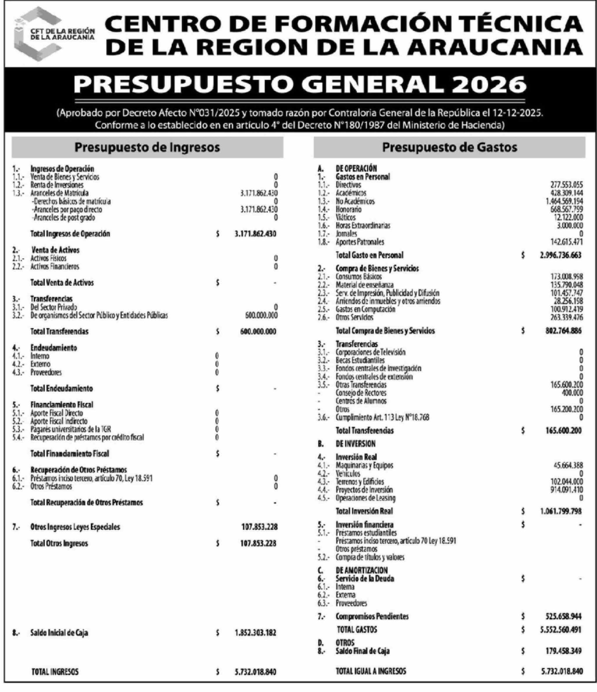 Extractos: CENTRO DE FORMACIÓN TÉCNICA DE LA REGION DE LA ARAUCANIA