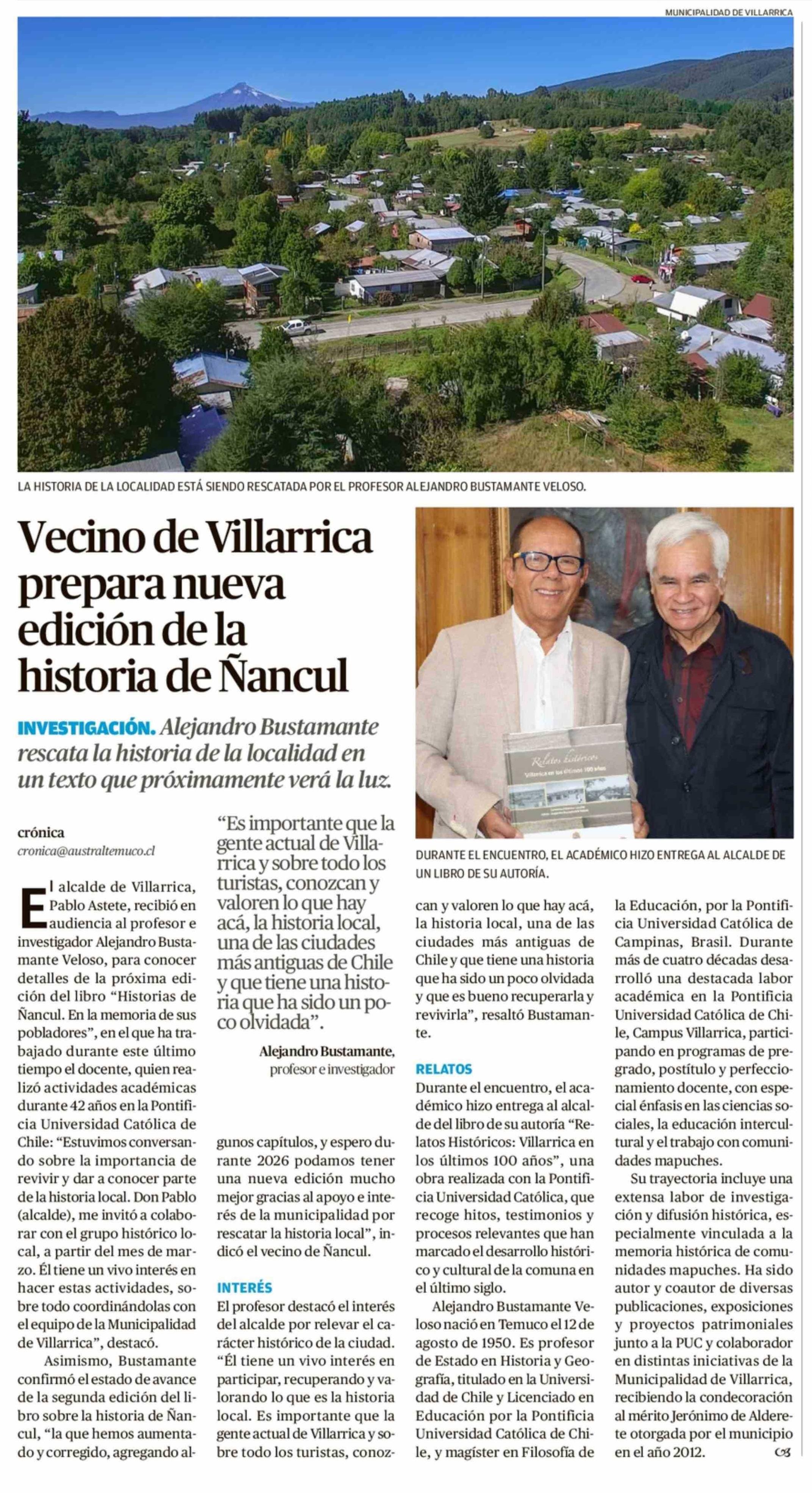 Vecino de Villarrica prepara nueva edición de la historia de Ñancul