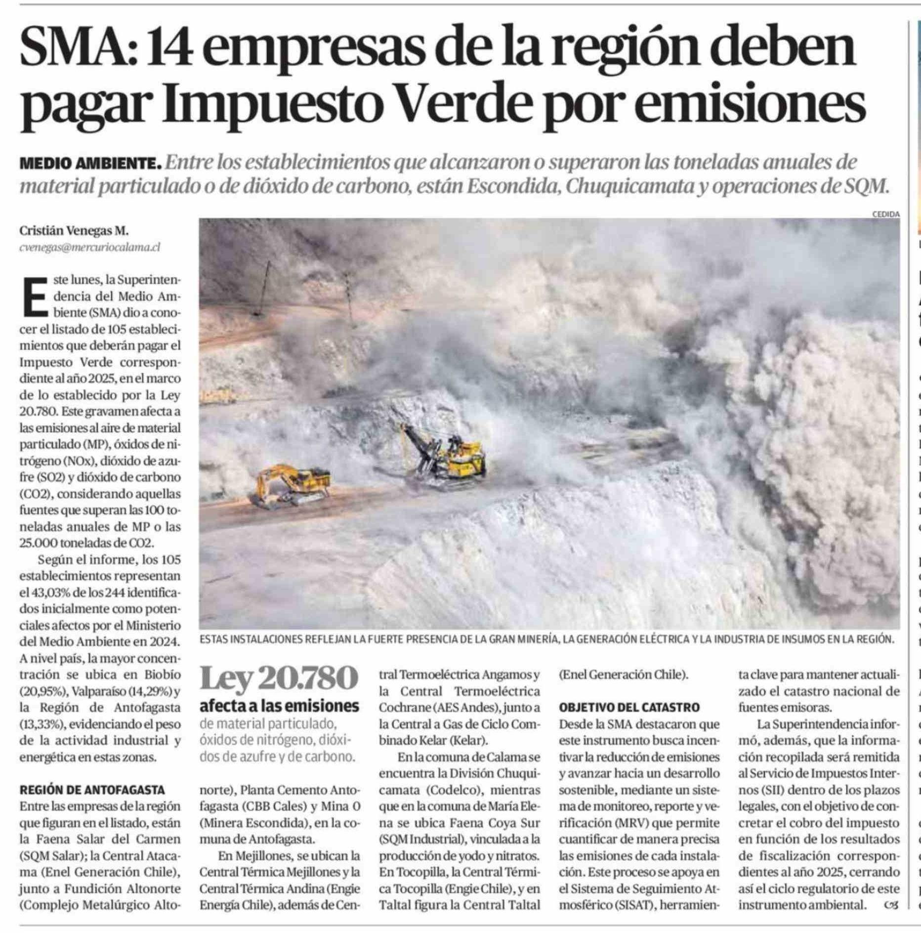 SMA: 14 empresas de la región deben pagar Impuesto Verde por emisiones