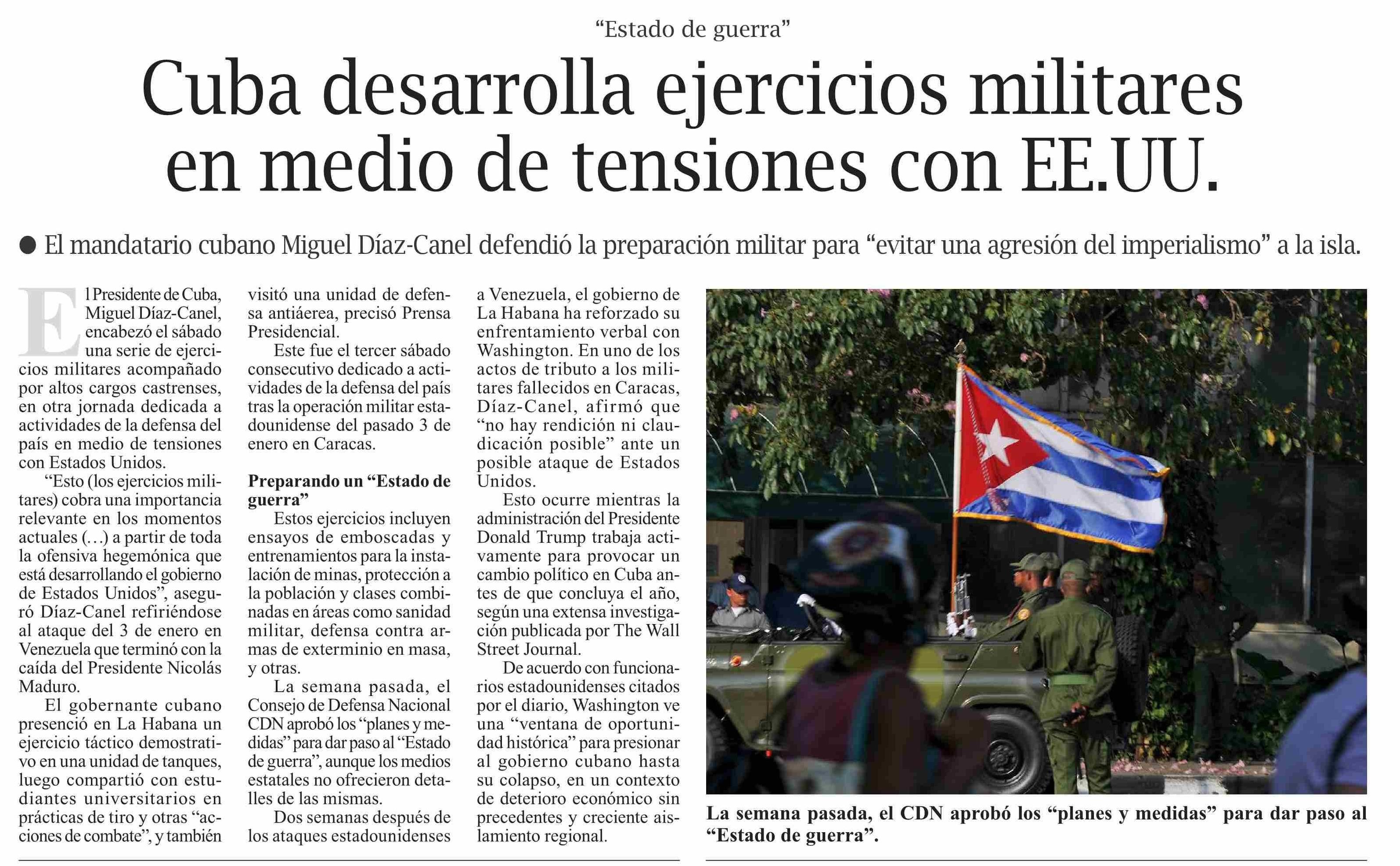 Cuba desarrolla ejercicios militares en medio de tensiones con EE.UU.