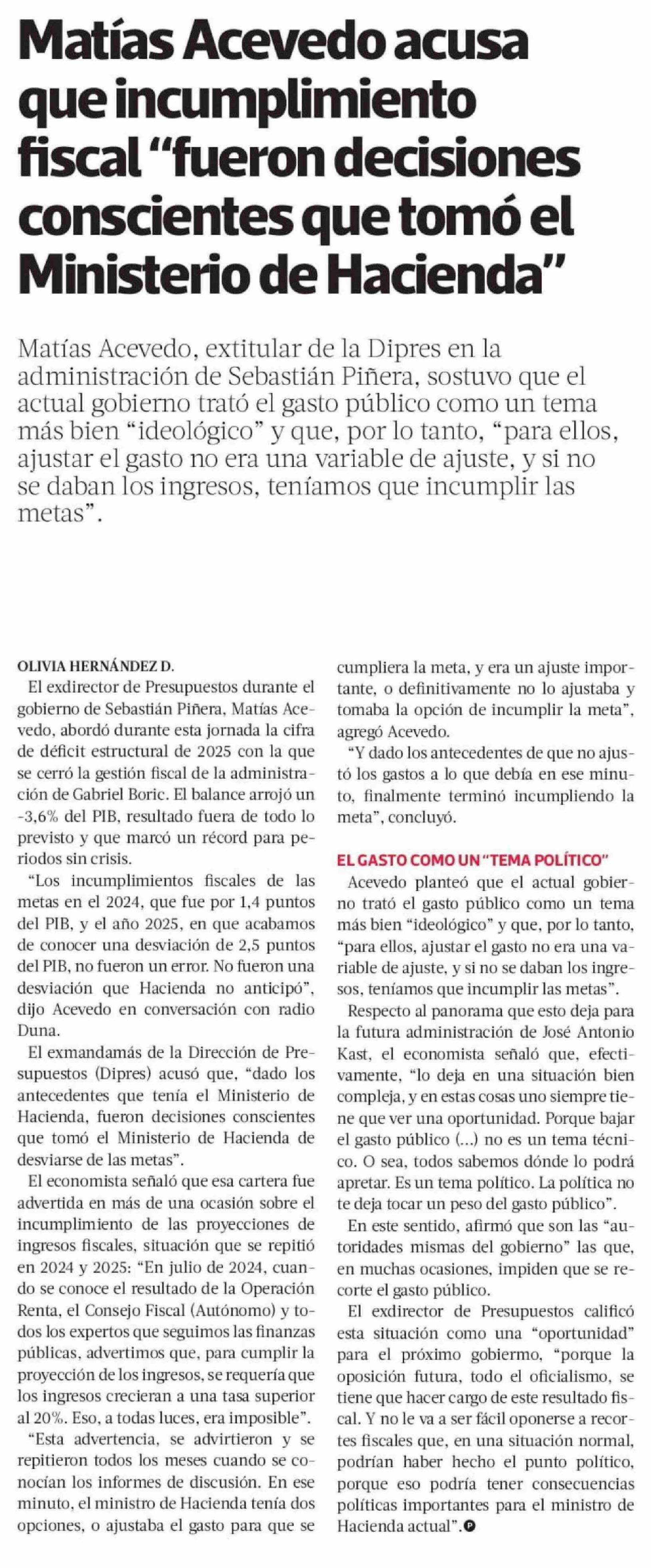 Matías Acevedo acusa que incumplimiento fiscal "fueron decisiones conscientes que tomó el Ministerio de Hacienda"