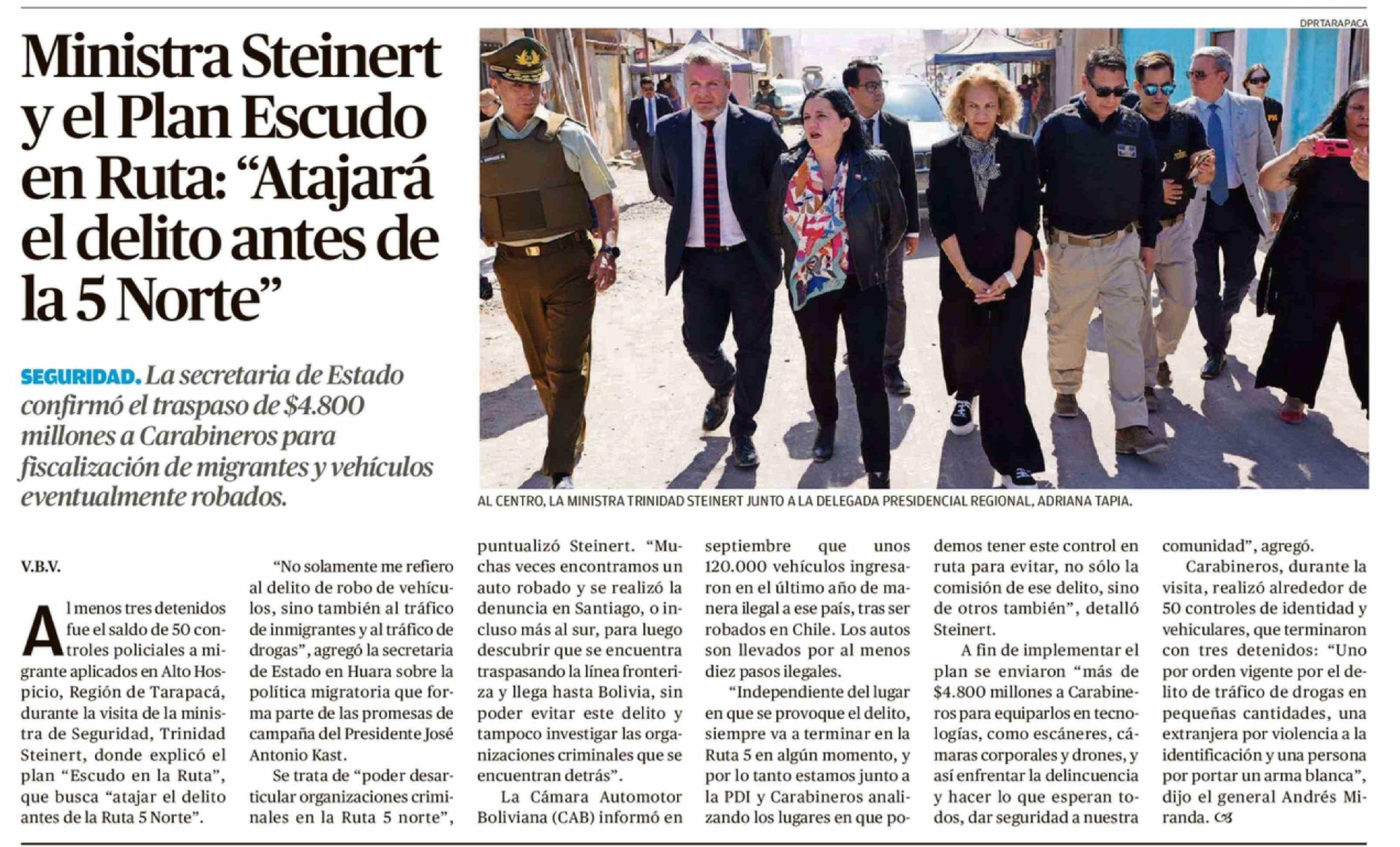 Ministra Steinert y el Plan Escudo en Ruta: "Atajará el delito antes de la 5 Norte"