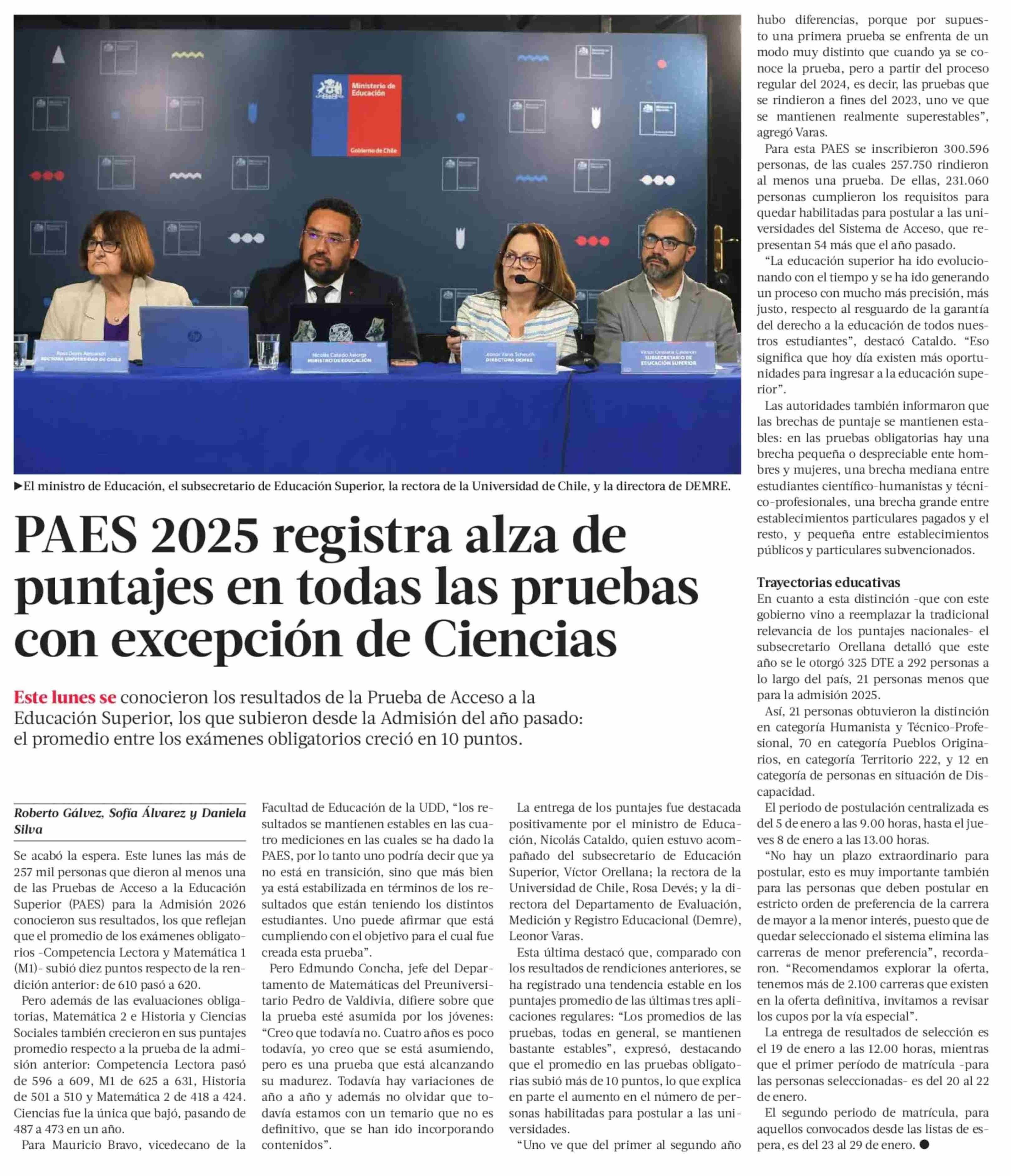 PAES 2025 registra alza de puntajes en todas las pruebas con excepción de Ciencias