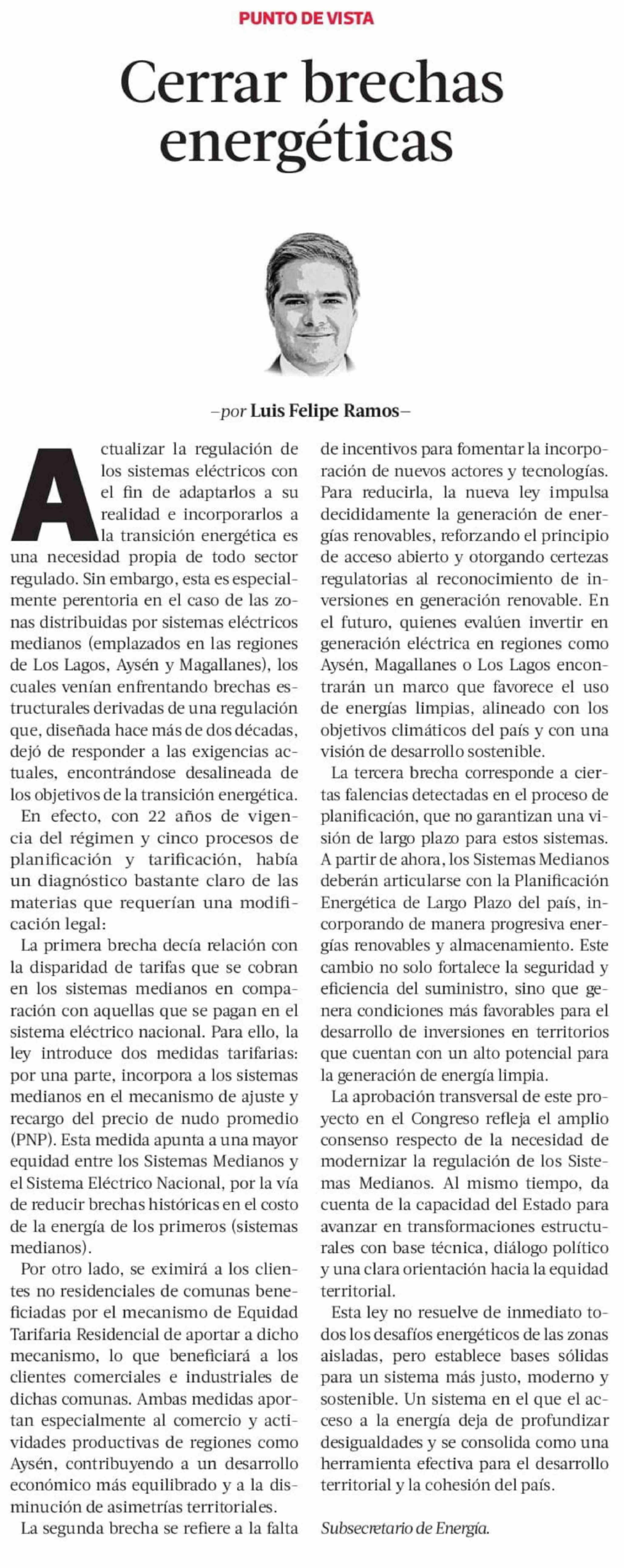 Columnas de Opinión: Cerrar brechas energéticas