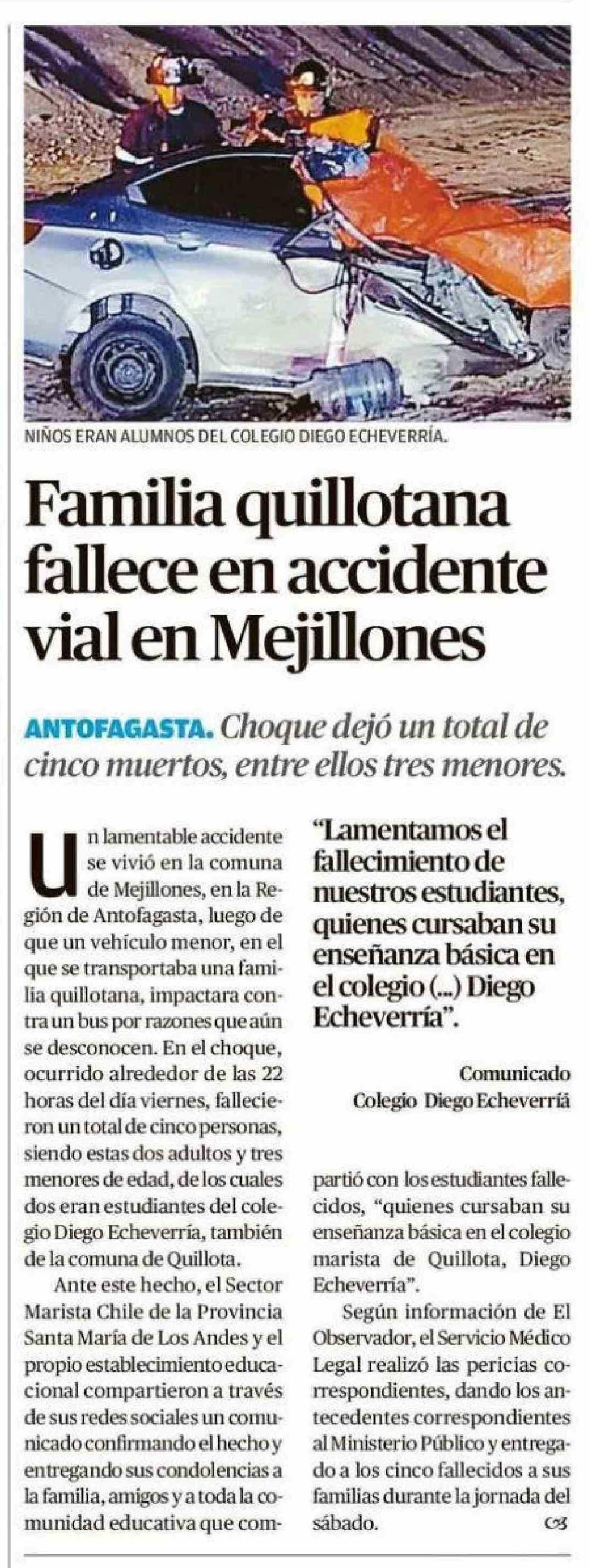 Familia quillotana fallece en accidente vial en Mejillones