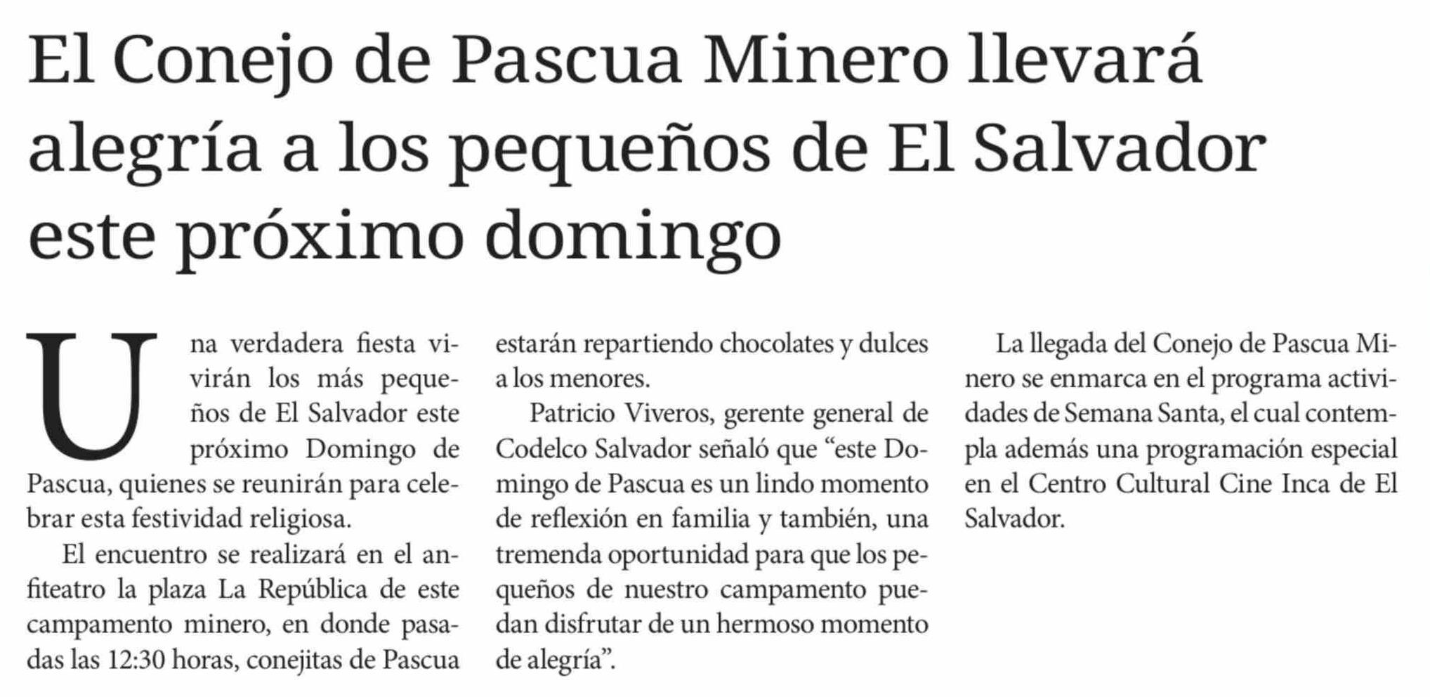 El Conejo de Pascua Minero llevará alegría a los pequeños de El Salvador este próximo domingo
