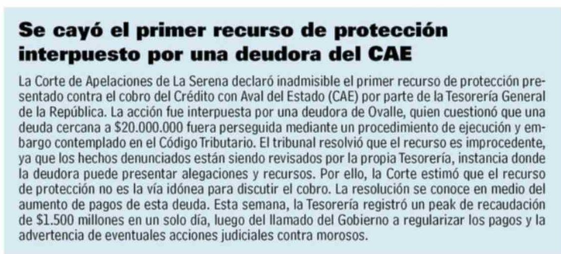 Se cayó el primer recurso de protección interpuesto por una deudora del CAE
