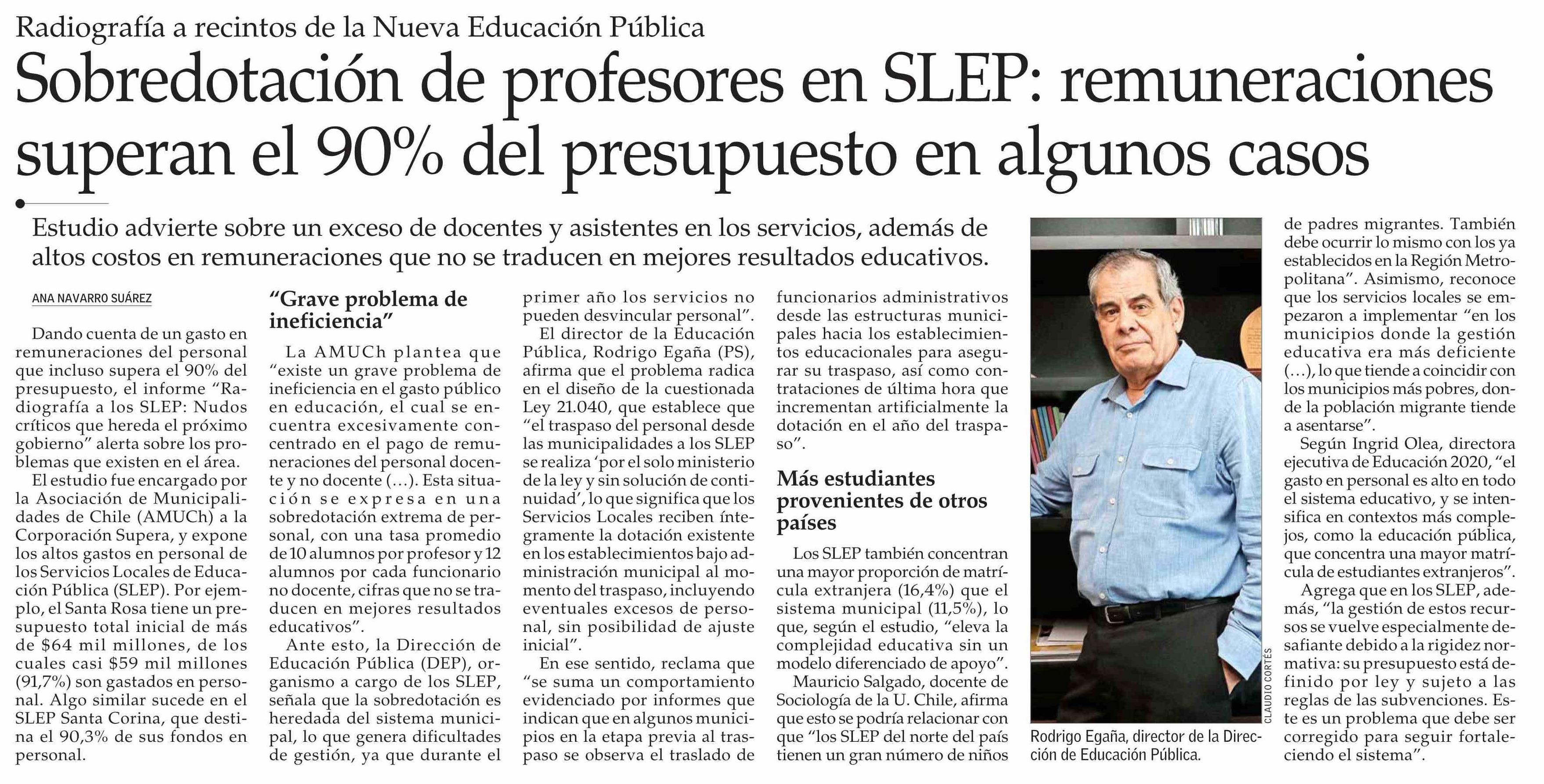 Sobredotación de profesores en SLEP: remuneraciones superan el 90% del presupuesto en algunos casos