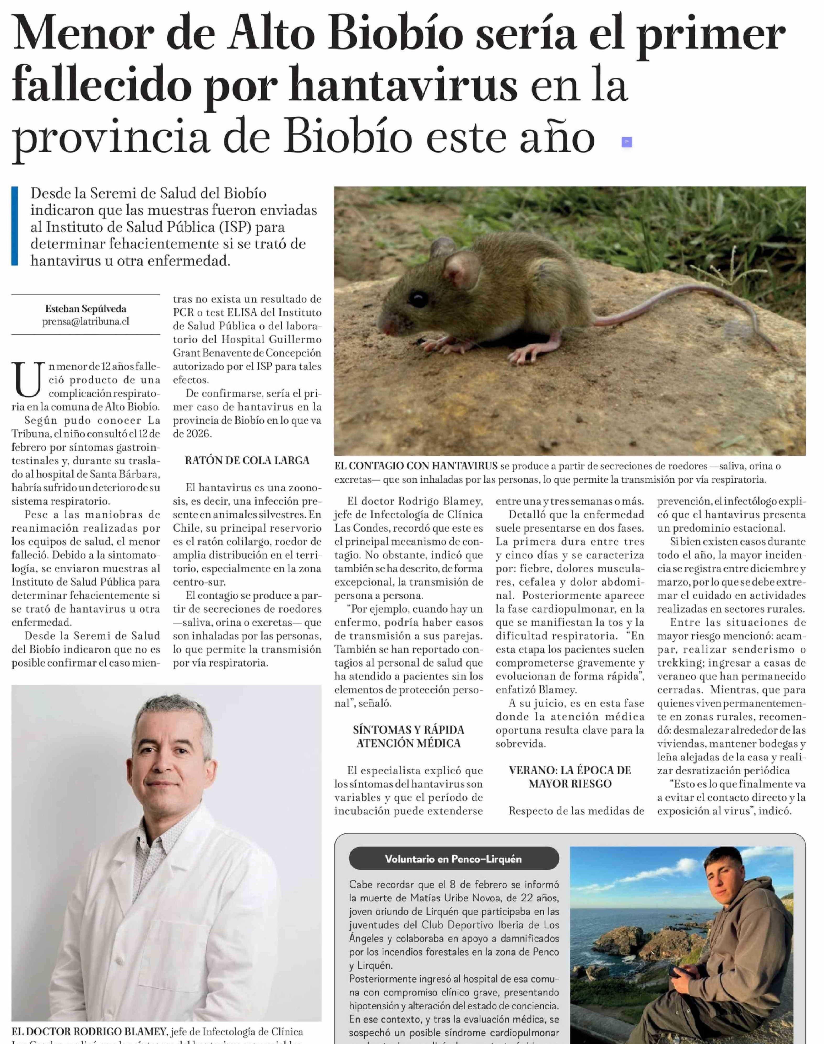Menor de Alto Biobío sería el primer fallecido por hantavirus en la provincia de Biobío este año