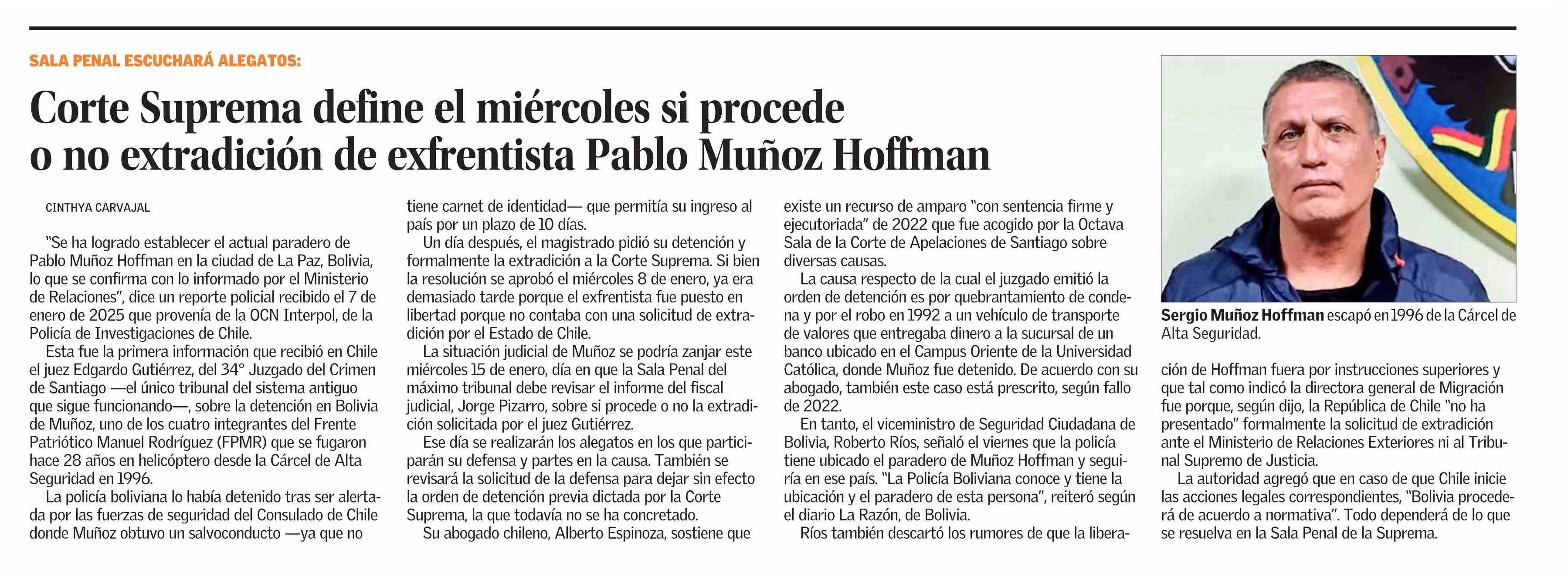 Corte Suprema define el miércoles si procede o no extradición de exfrentista Pablo Muñoz Hoffman