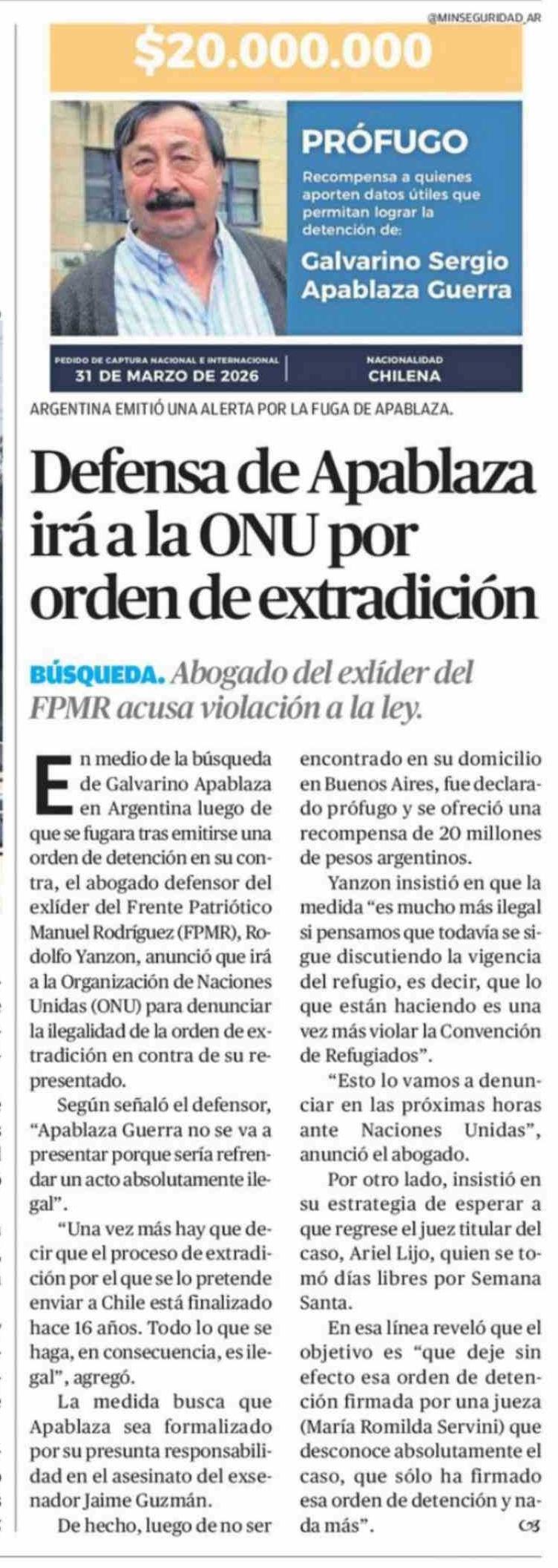 Defensa de Apablaza irá a la ONU por orden de extradición