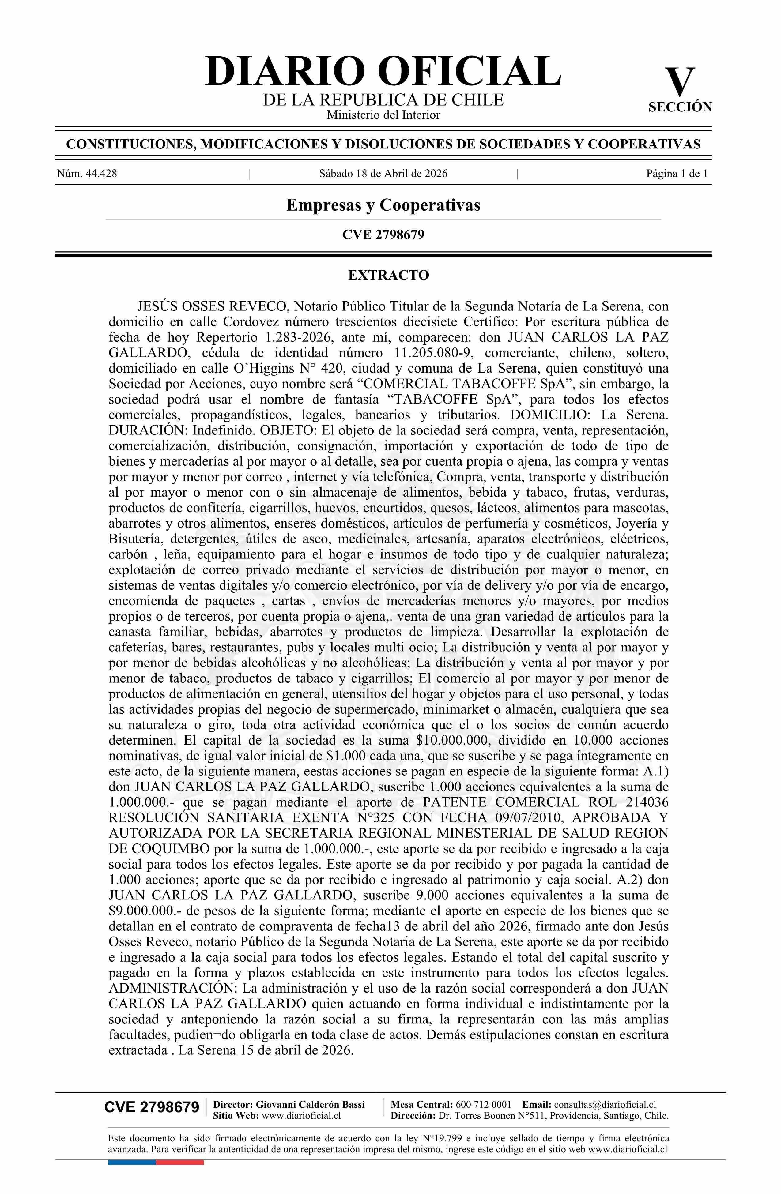 Diario Oficial Edición Electrónica (Diario Oficial de Chile - 5 Empresas Y Cooper)