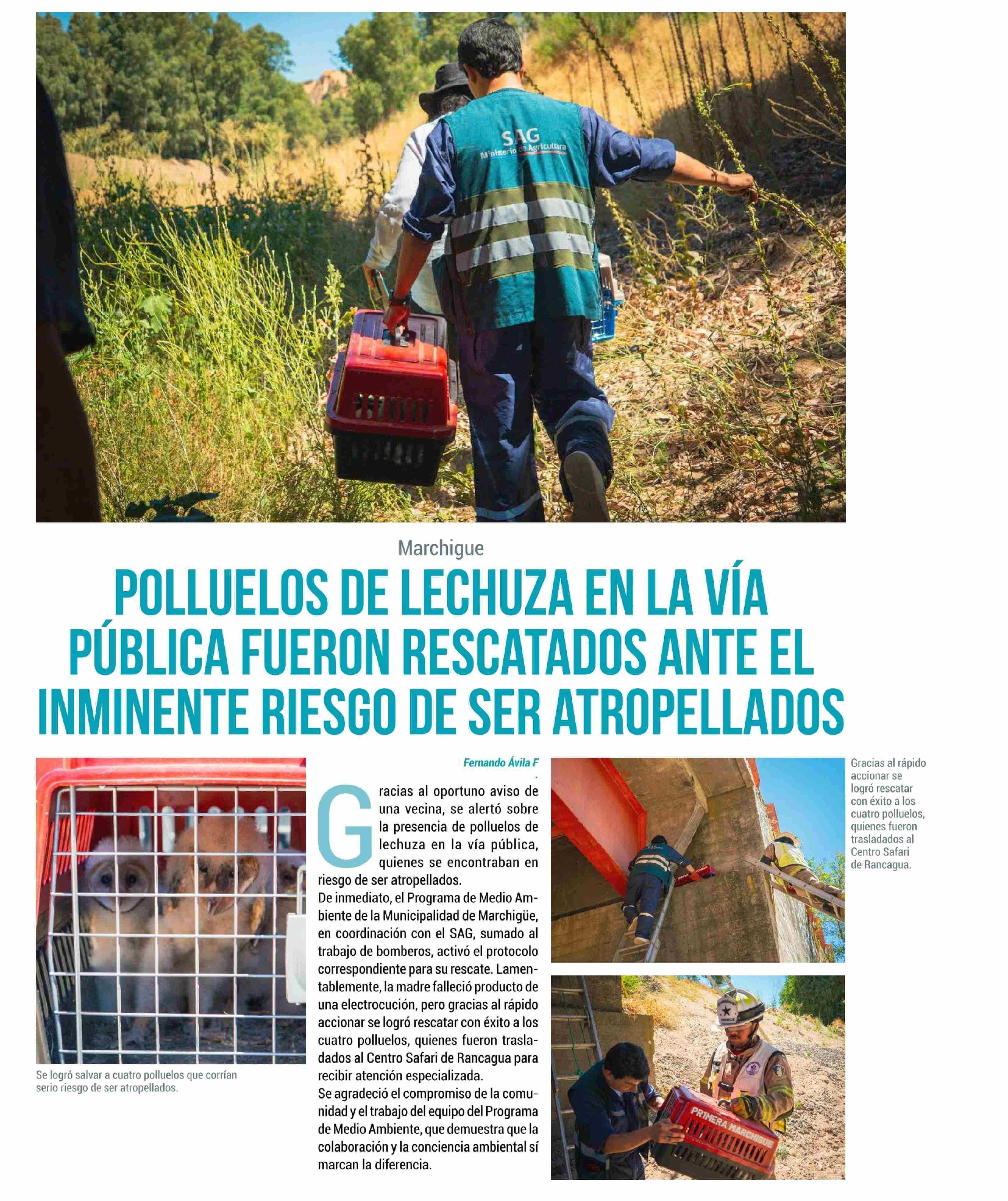 POLLUELOS DE LECHUZA EN LA VÍA PUBLICA FUERON RESCATADOS ANTE EL INMINENTE RIESGO DE SER ATROPELLADOS