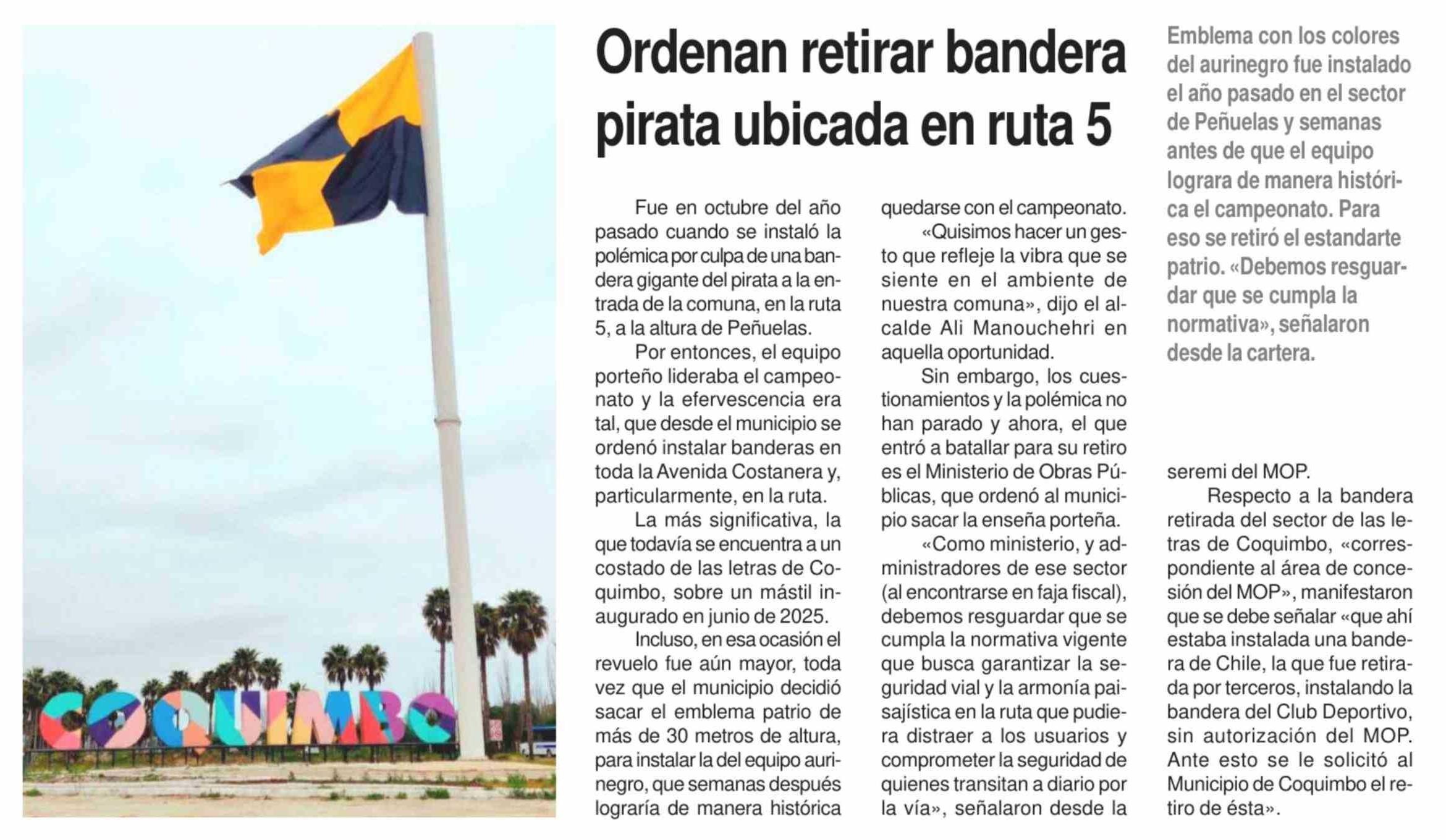 Ordenan retirar bandera pirata ubicada en ruta 5