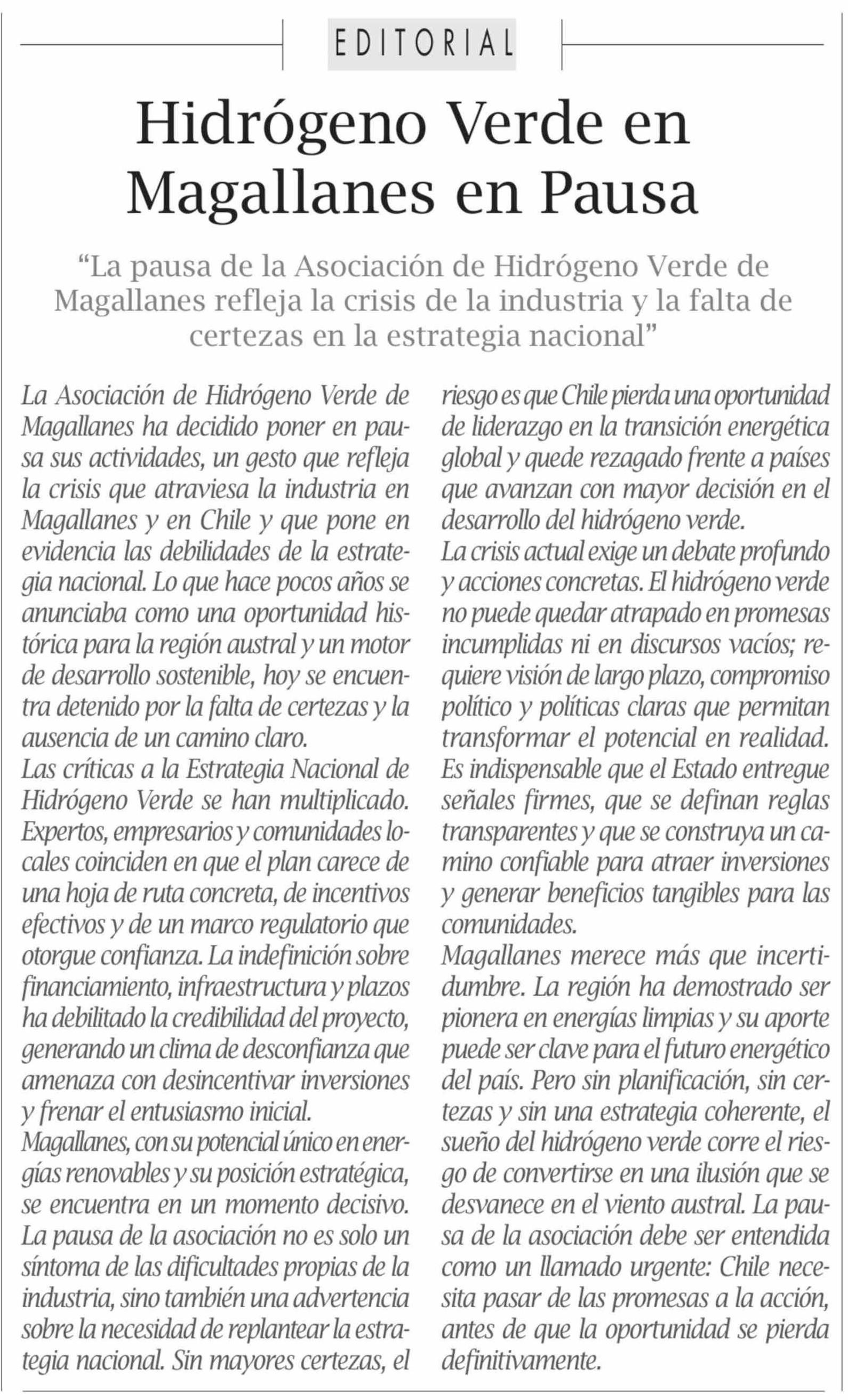 EDITORIAL: Hidrógeno Verde en Magallanes en Pausa