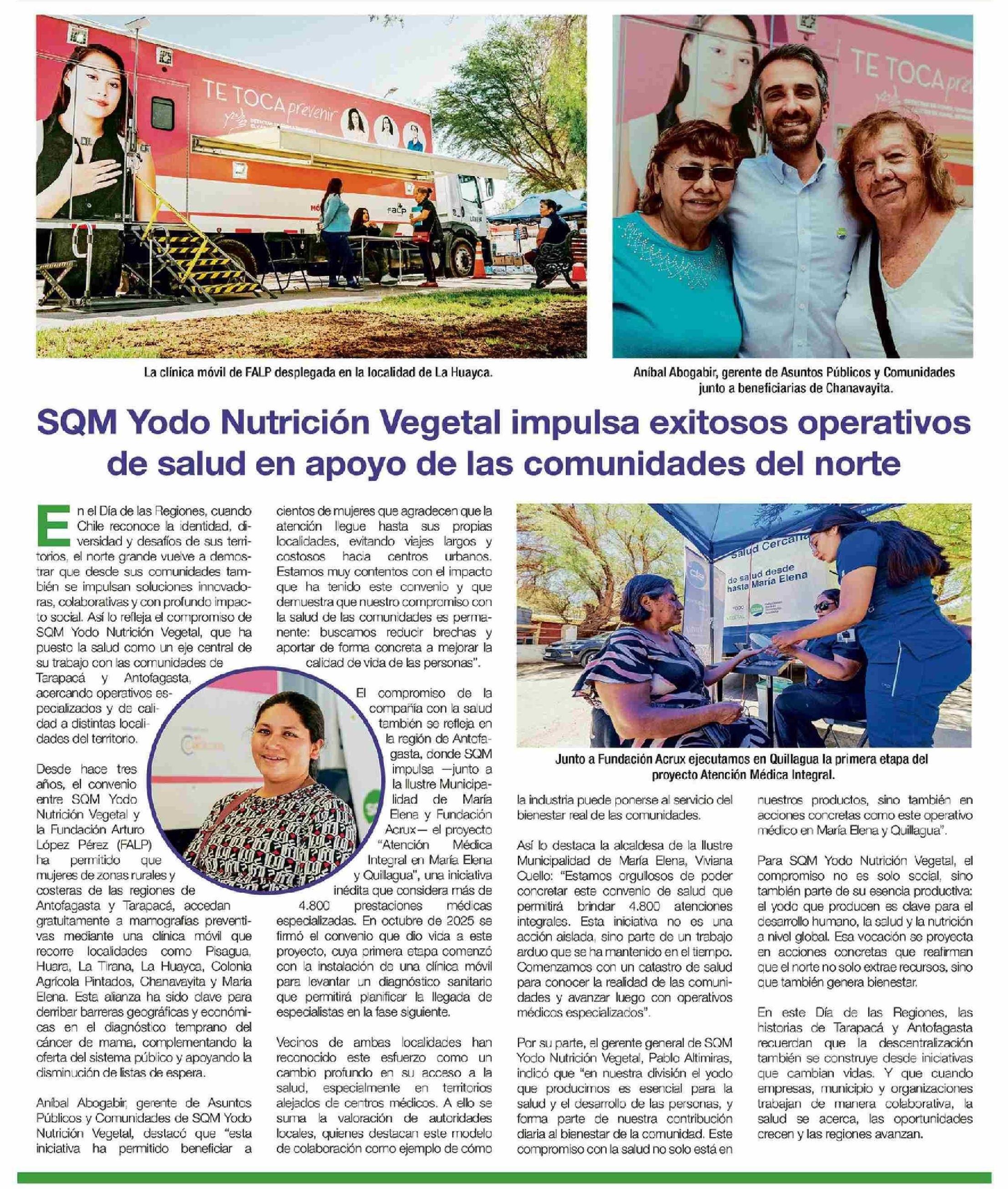 Título: SQM Yodo Nutrición Vegetal impulsa exitosos operativos de salud en apoyo de las comunidades del norte