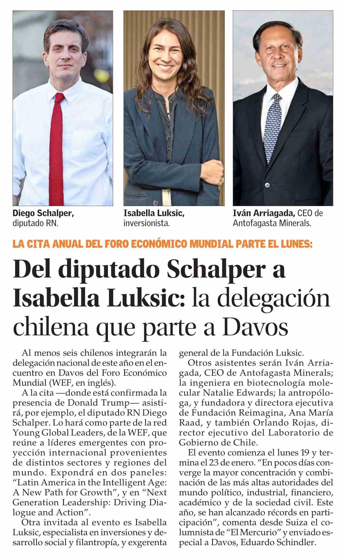 Del diputado Schalper a Isabella Luksic: la delegación chilena que parte a Davos