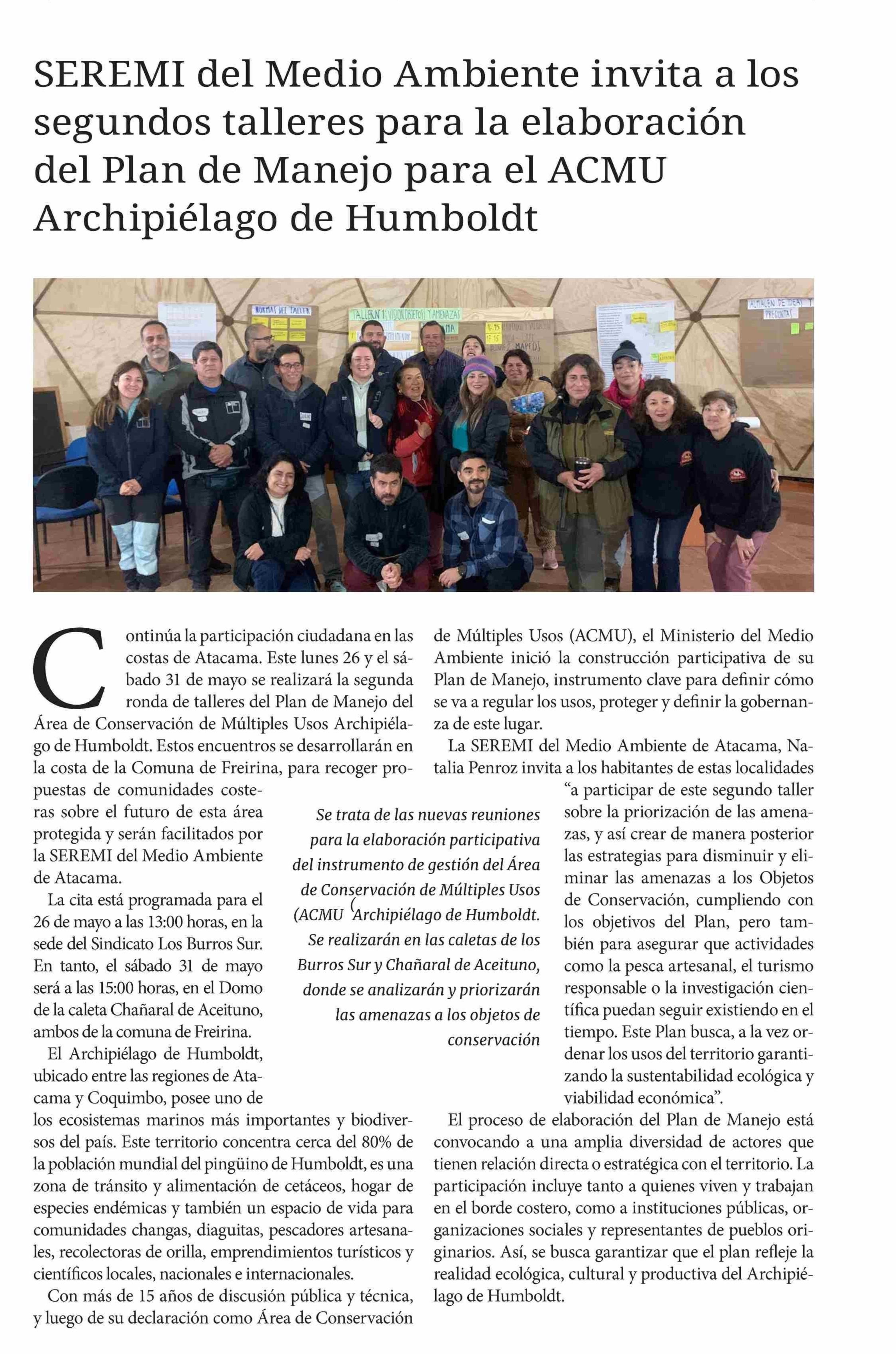 SEREMI del Medio Ambiente invita a los segundos talleres para la elaboración del Plan de Manejo para el ACMU Archipiélago de Humboldt