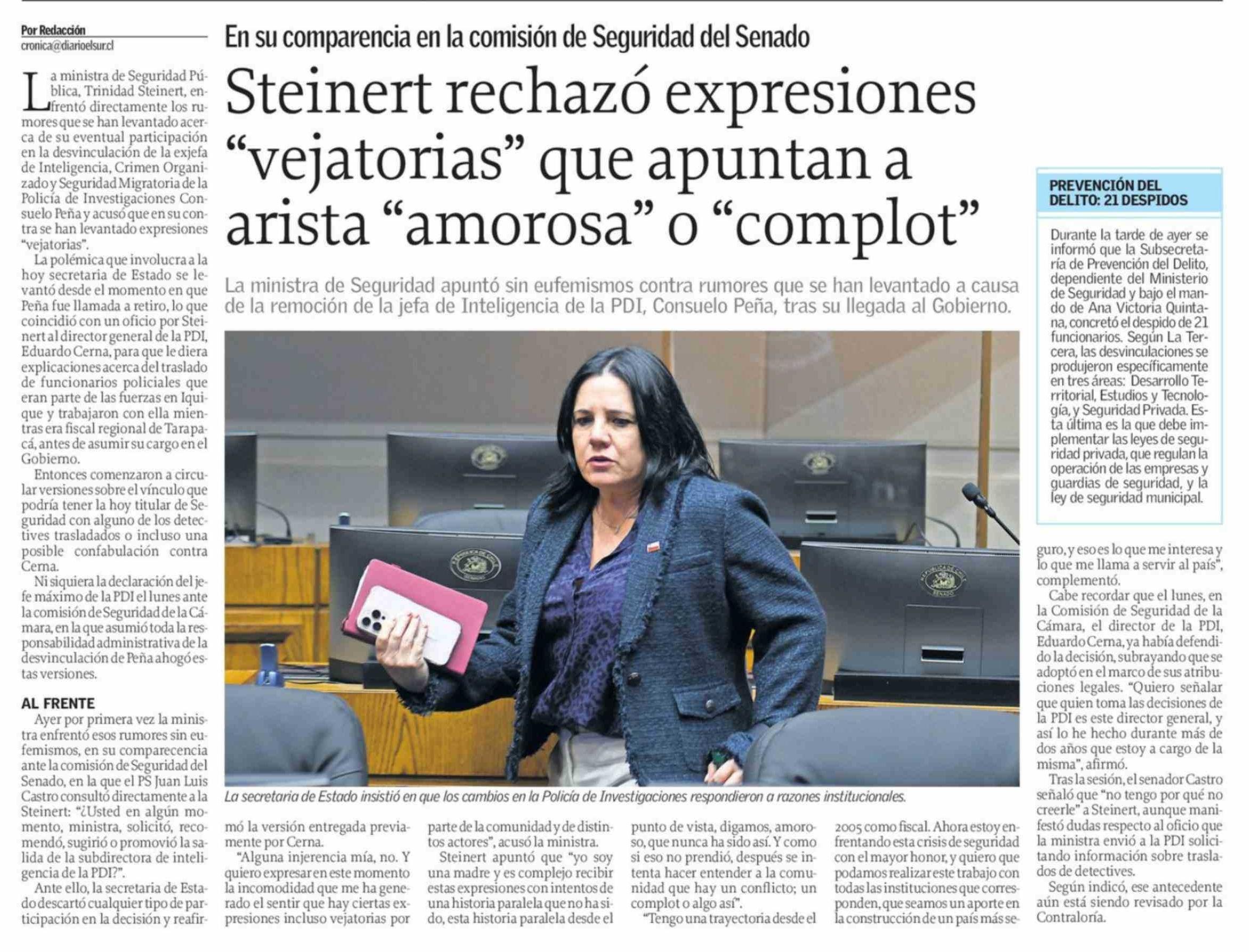 Steinert rechazó expresiones "vejatorias" que apuntan a arista "amorosa" o "complot"