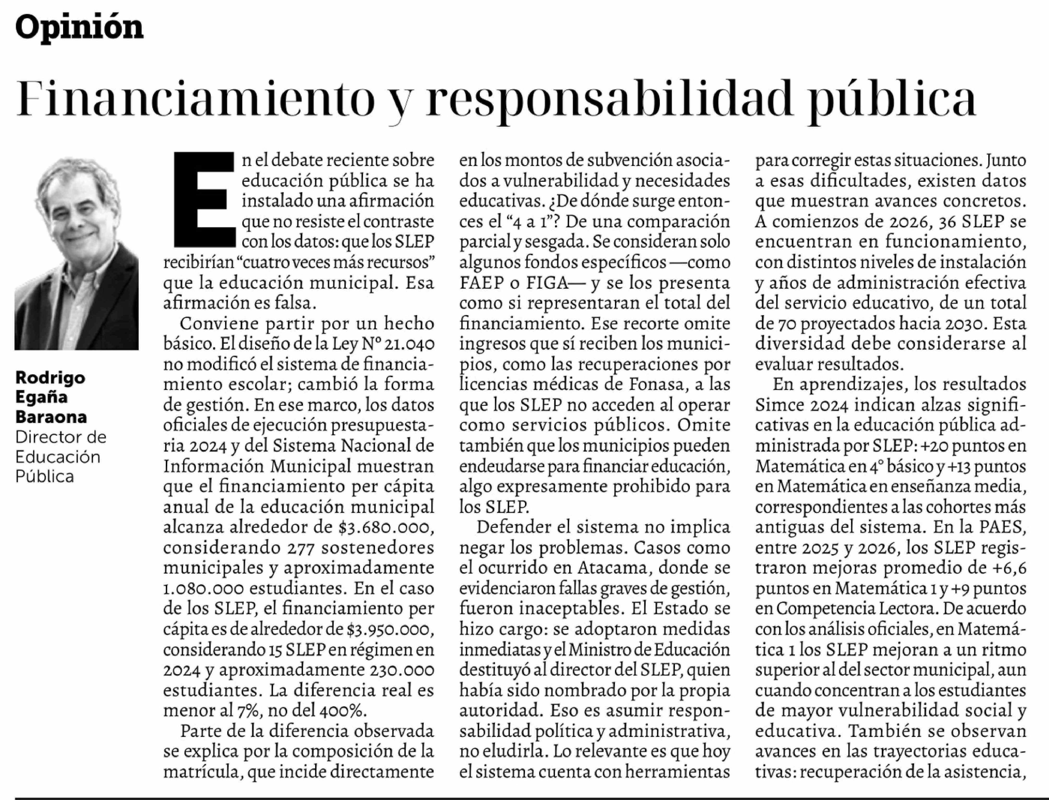 Columnas de Opinión: Financiamiento y responsabilidad pública