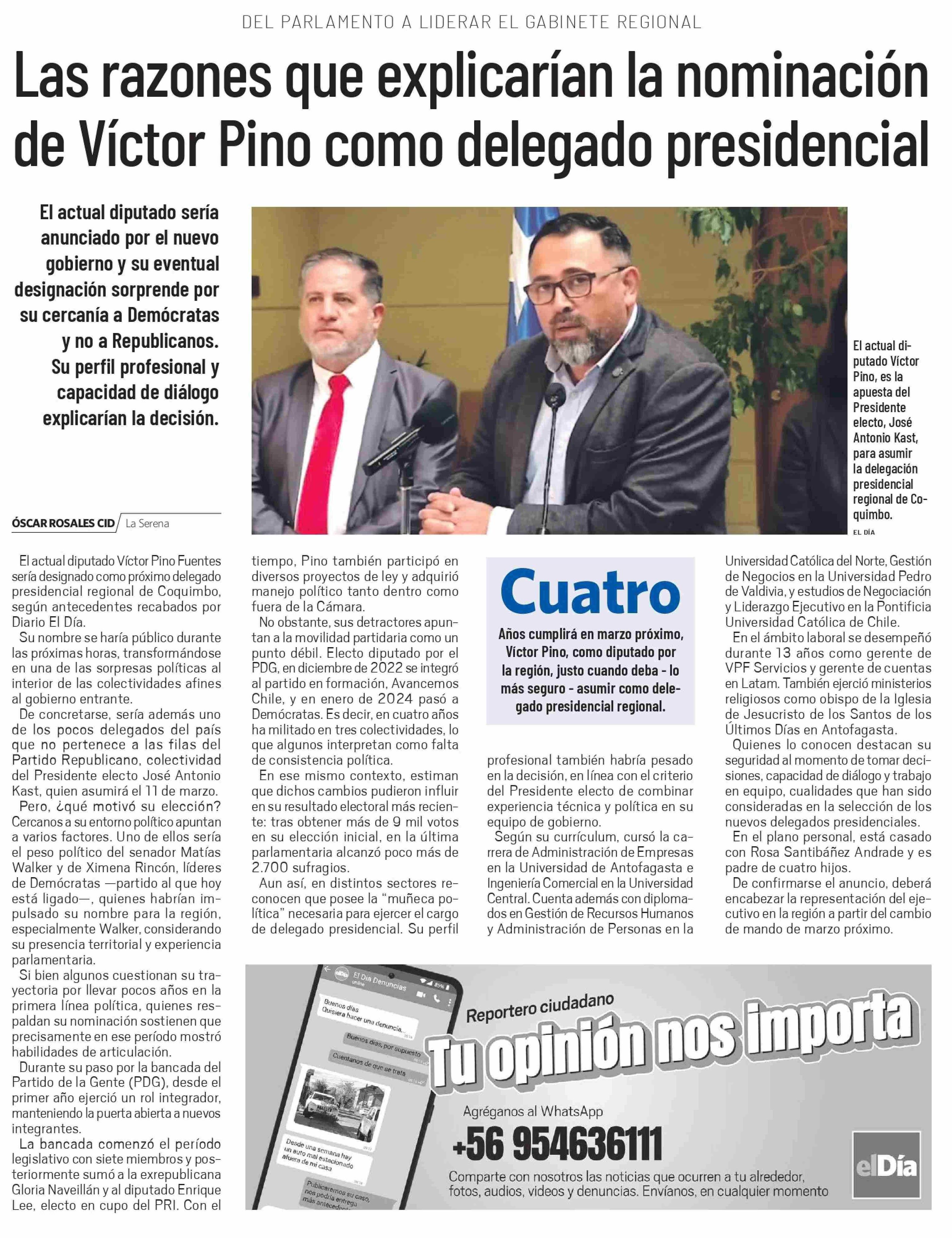 Las razones que explicarían la nominación de Víctor Pino como delegado presidencial