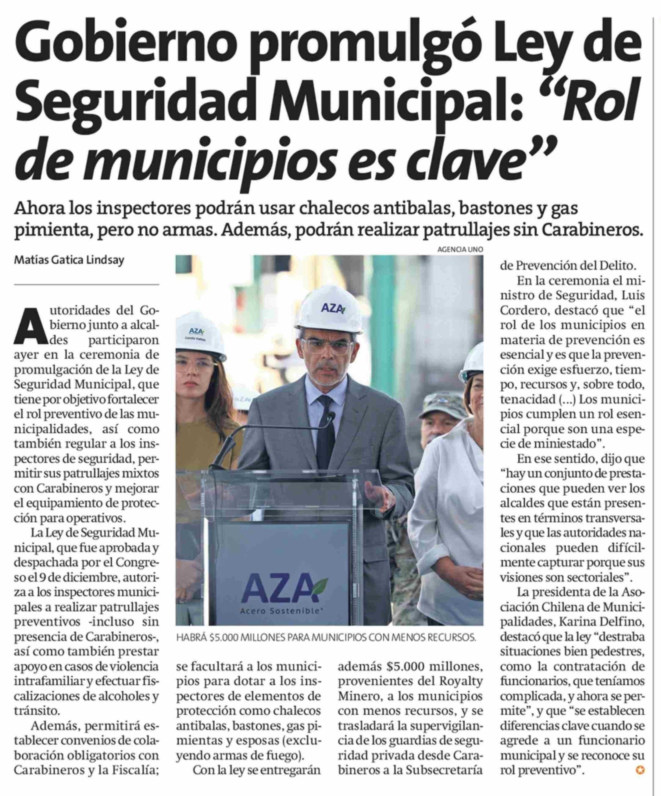 Gobierno promulgó Ley de Seguridad Municipal: "Rol de municipios es clave"