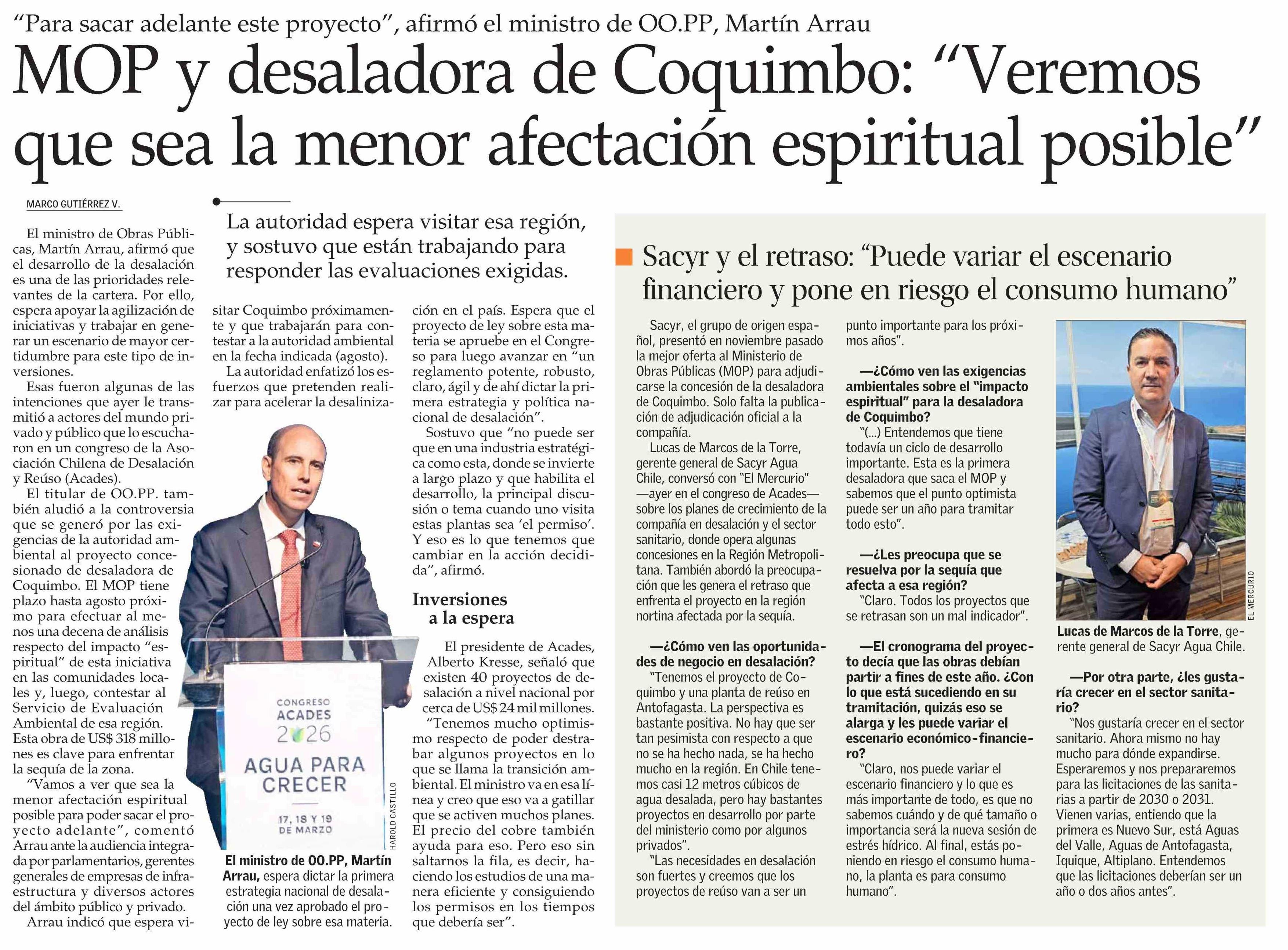 MOP y desaladora de Coquimbo: “Veremos que sea la menor afectación espiritual posible”