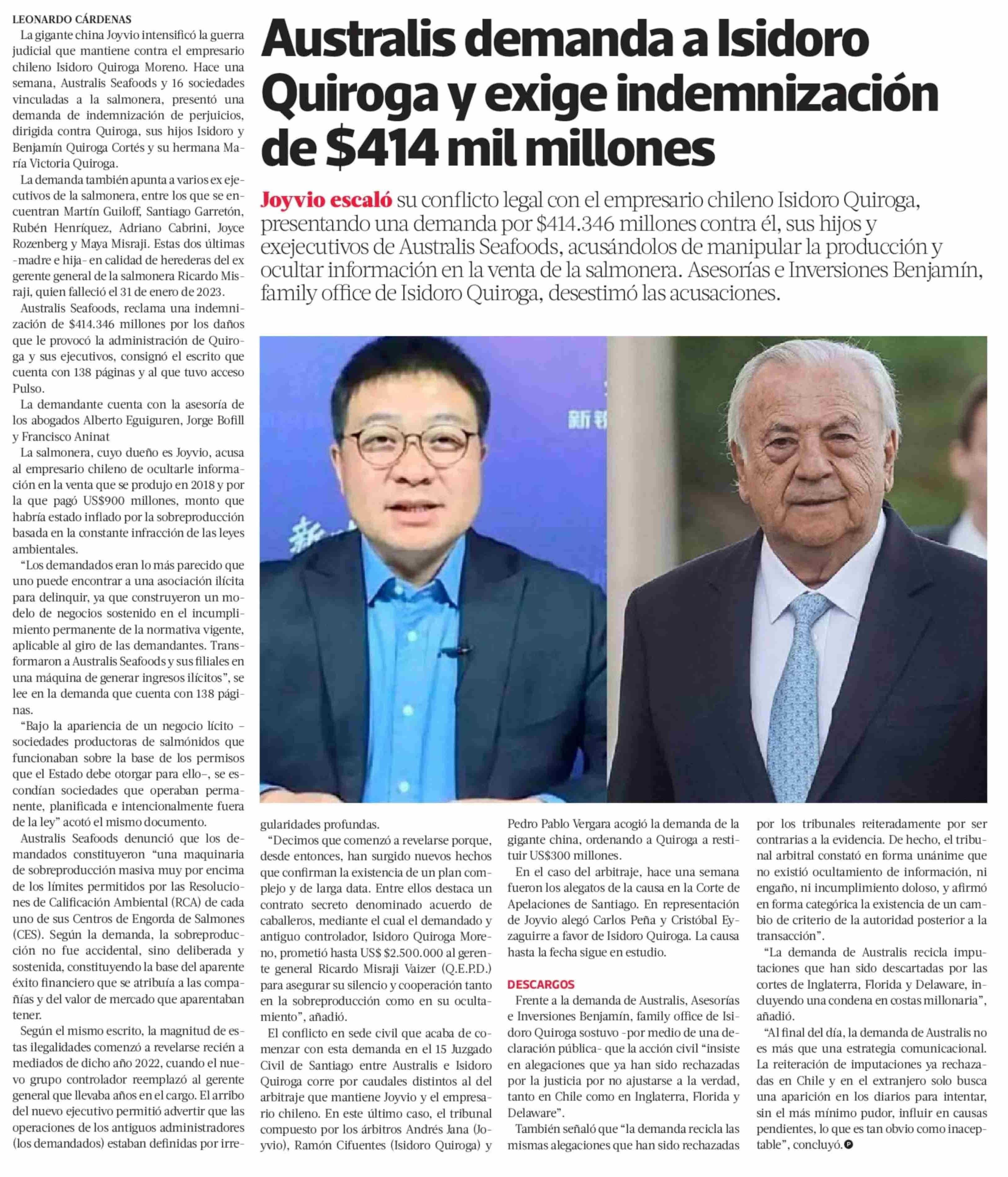 Australis demanda a Isidoro Quiroga y exige indemnización de $414 mil millones