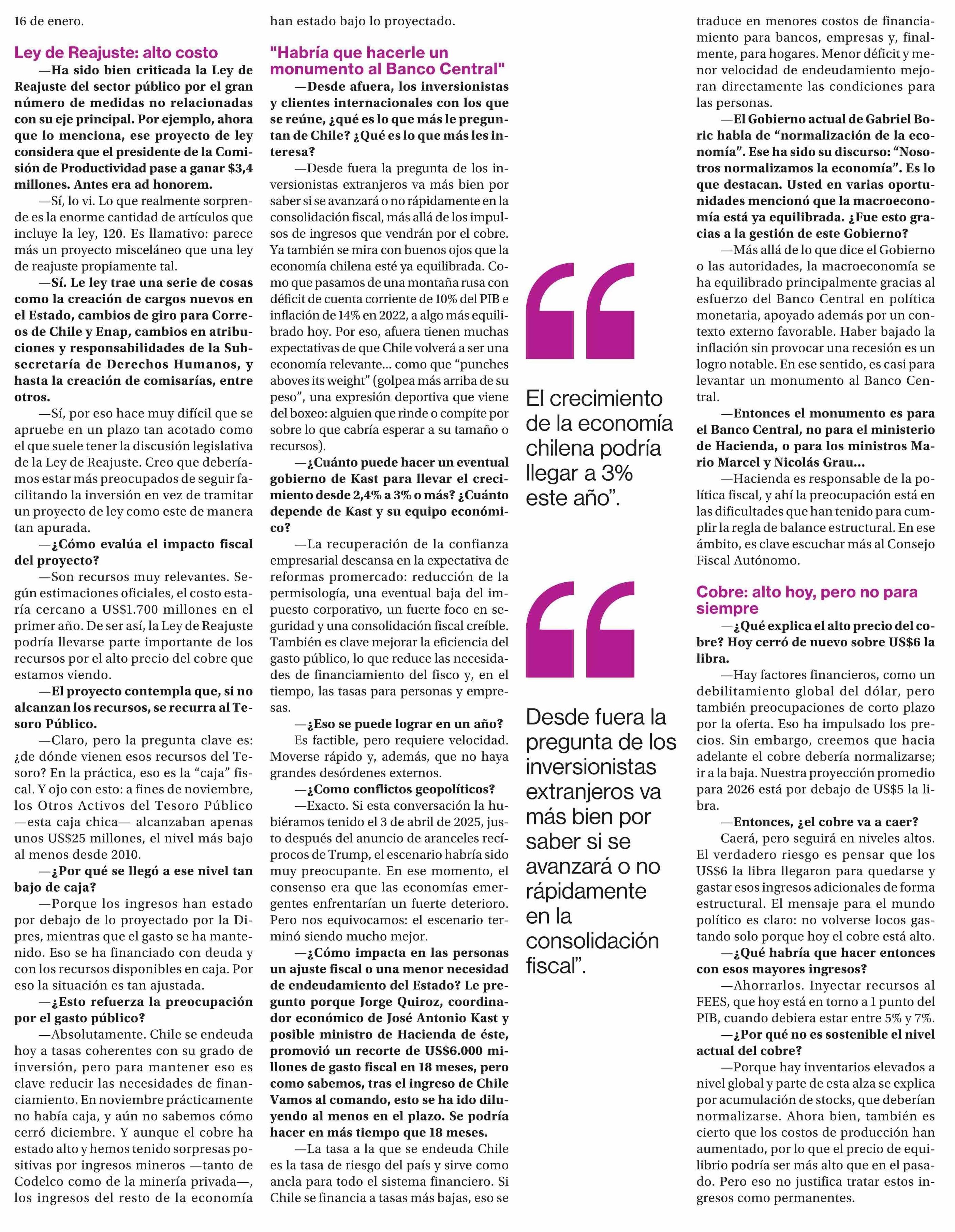 "La Ley de Reajuste podría llevarse parte importante de los recursos por el alto precio del cobre"