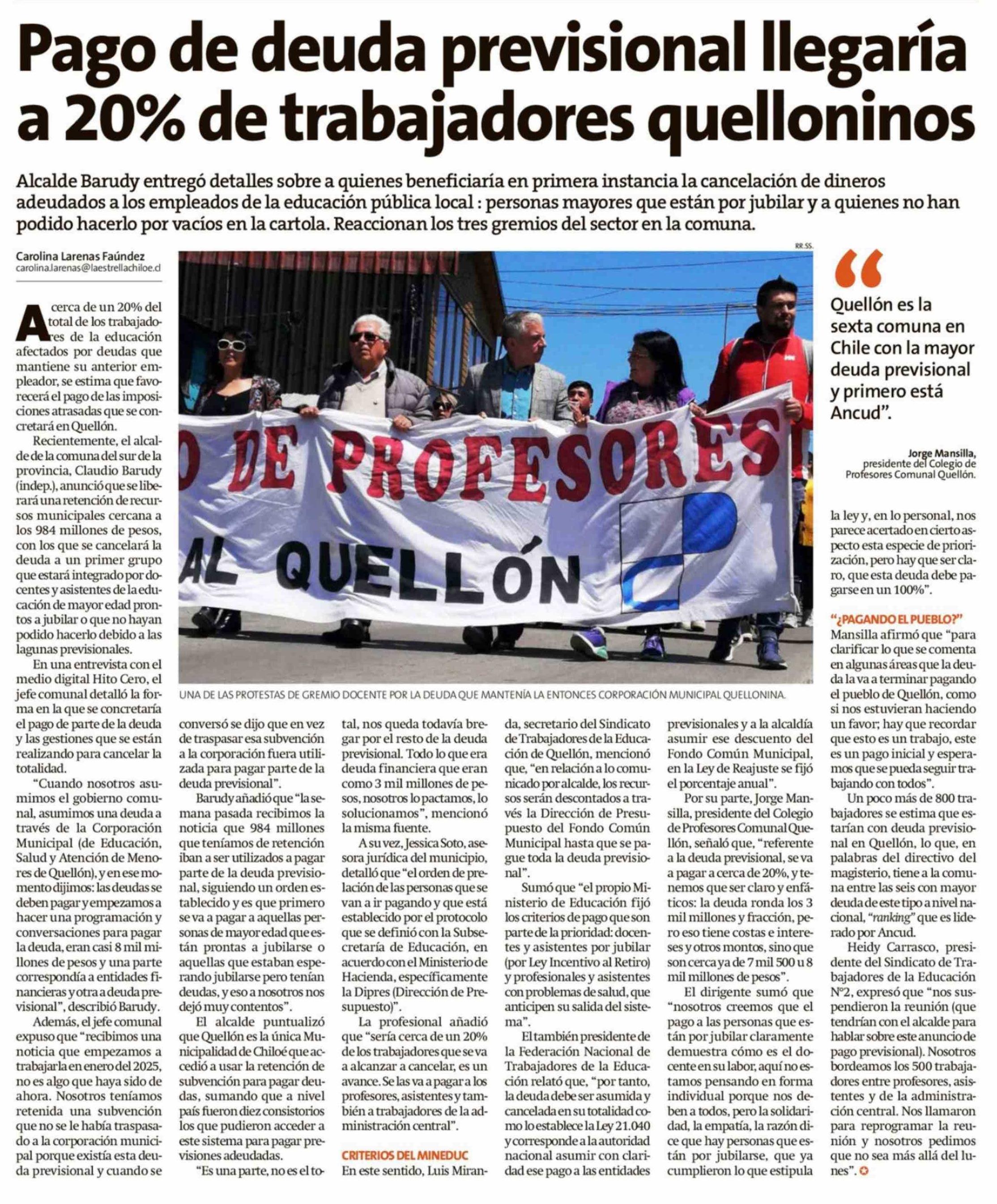 Pago de deuda previsional llegaría a 20% de trabajadores quelloninos