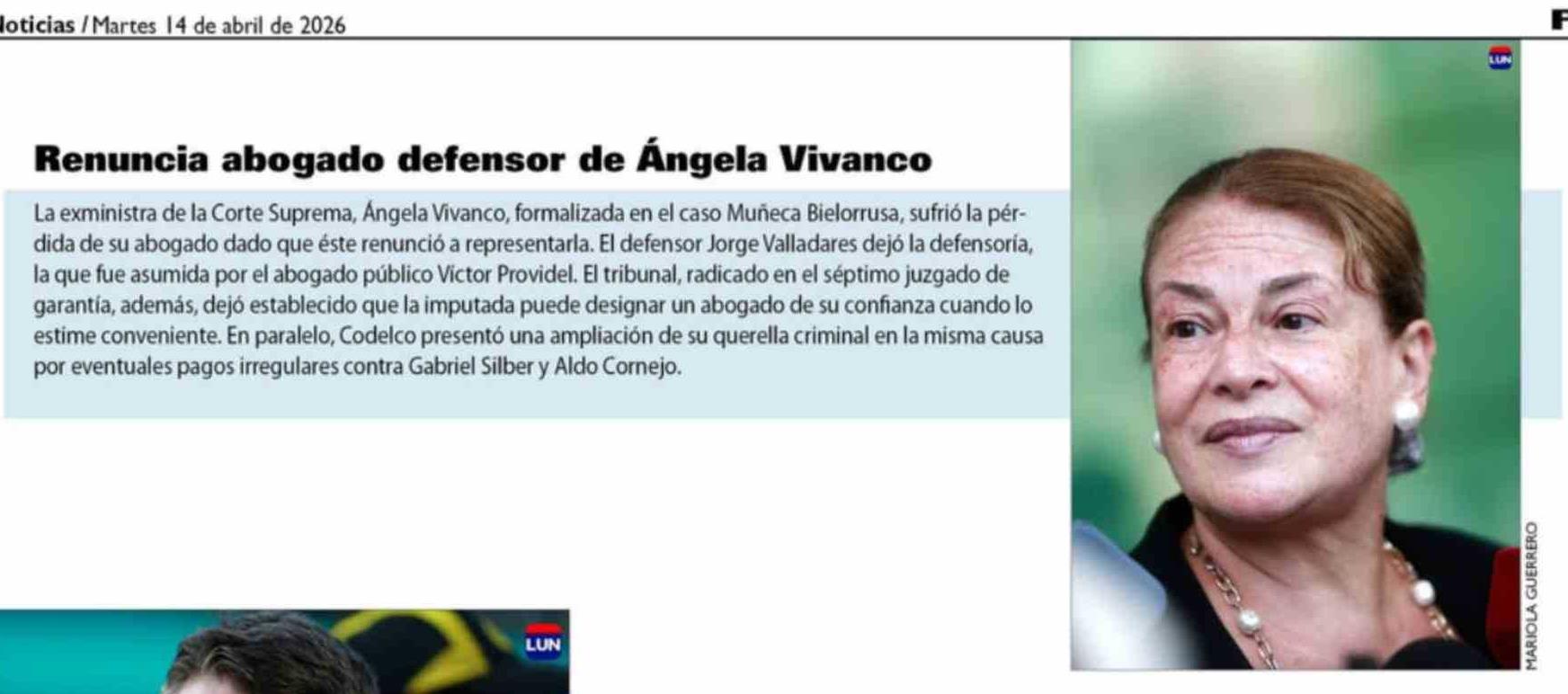 Renuncia abogado defensor de Ángela Vivanco