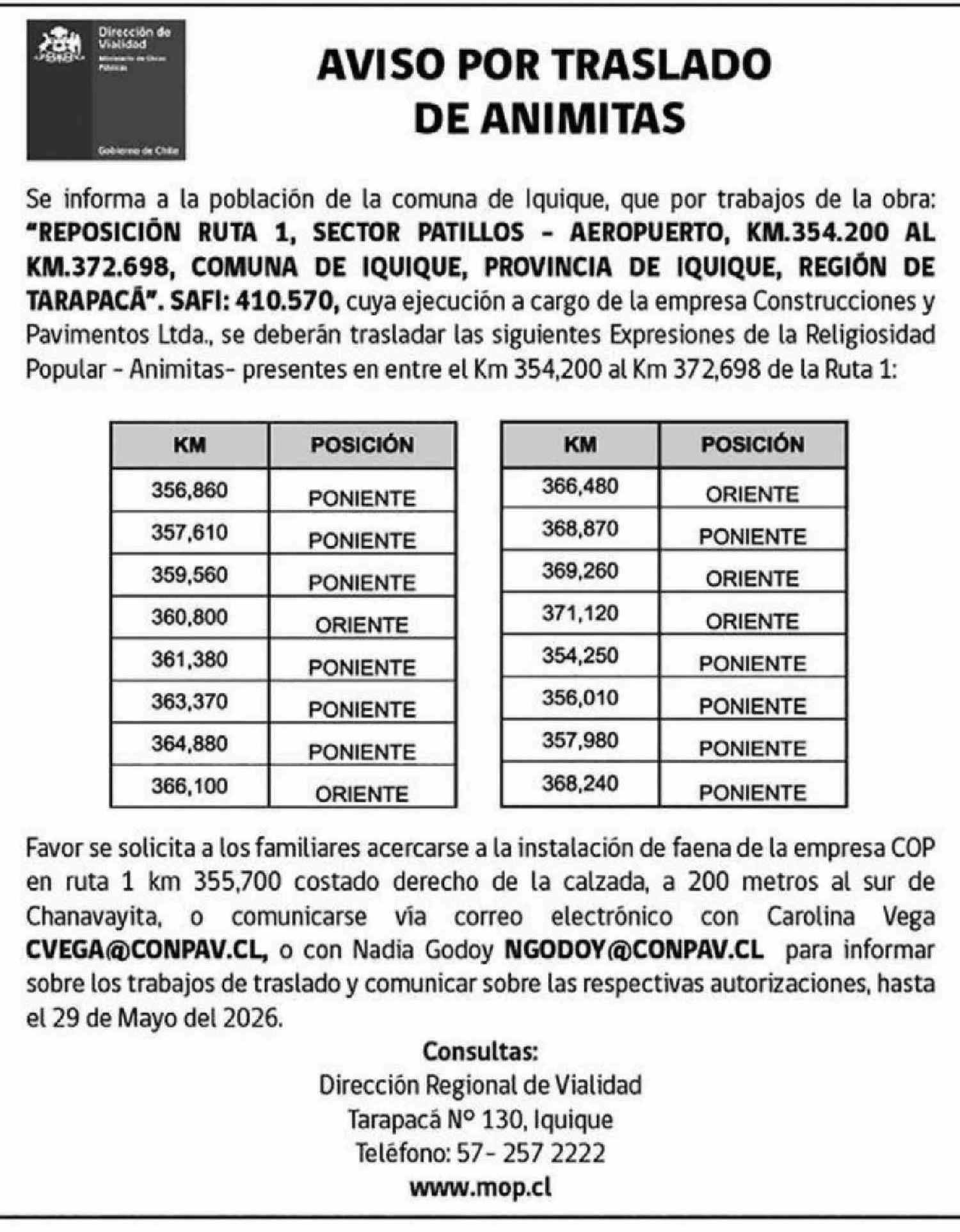 Extractos: AVISO POR TRASLADO DE ANIMITAS