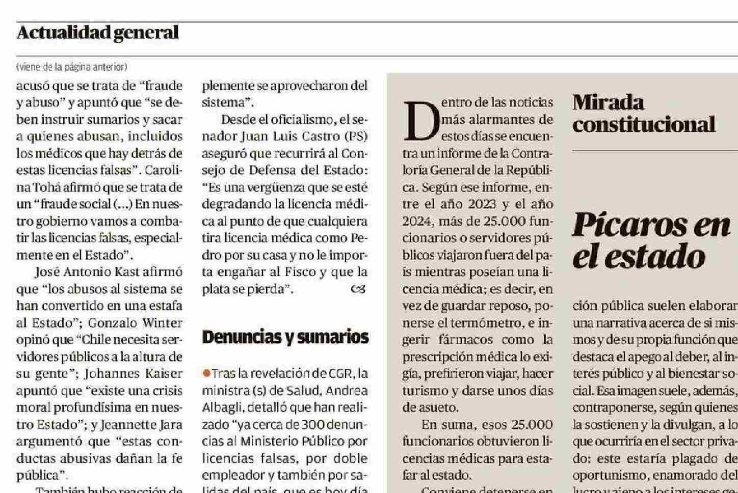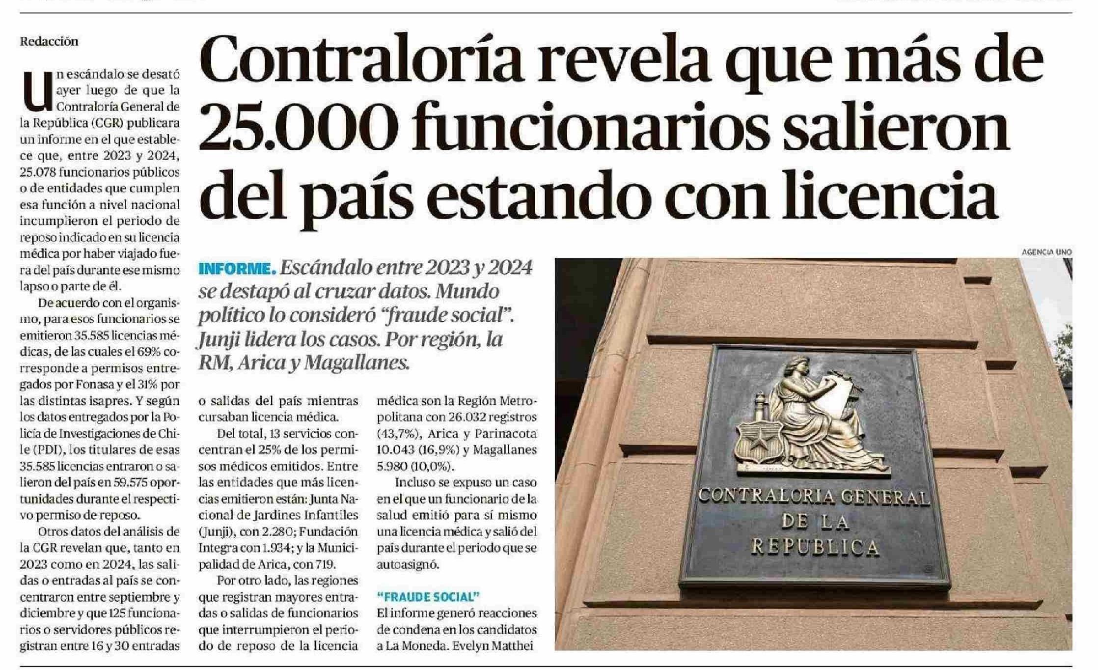 Contraloría revela que más de 25.000 funcionarios salieron del país estando con licencia