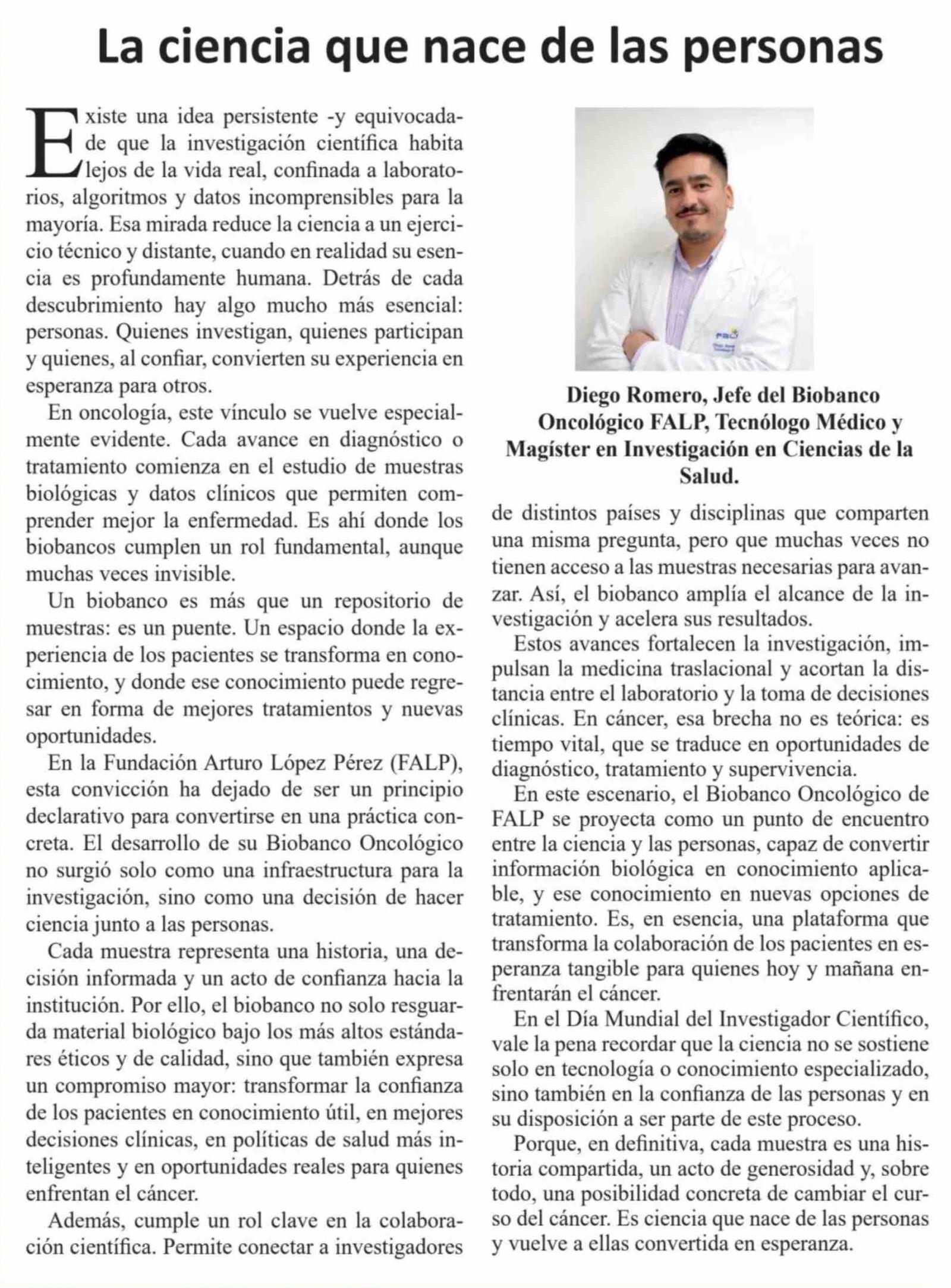 Columnas de Opinión: La ciencia que nace de las personas