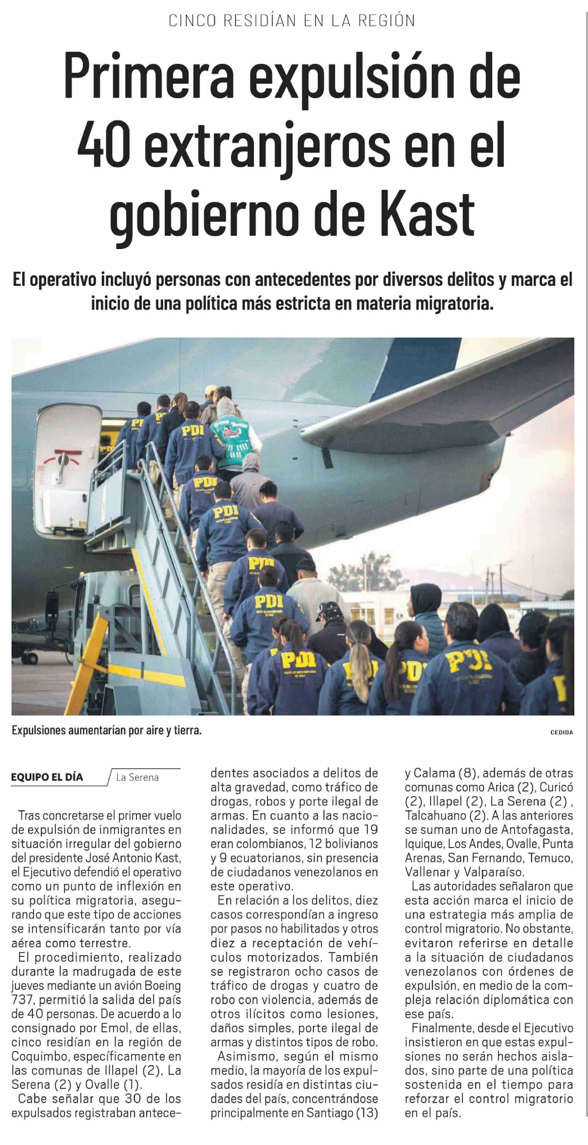 Primera expulsión de 40 extranjeros en el gobierno de Kast