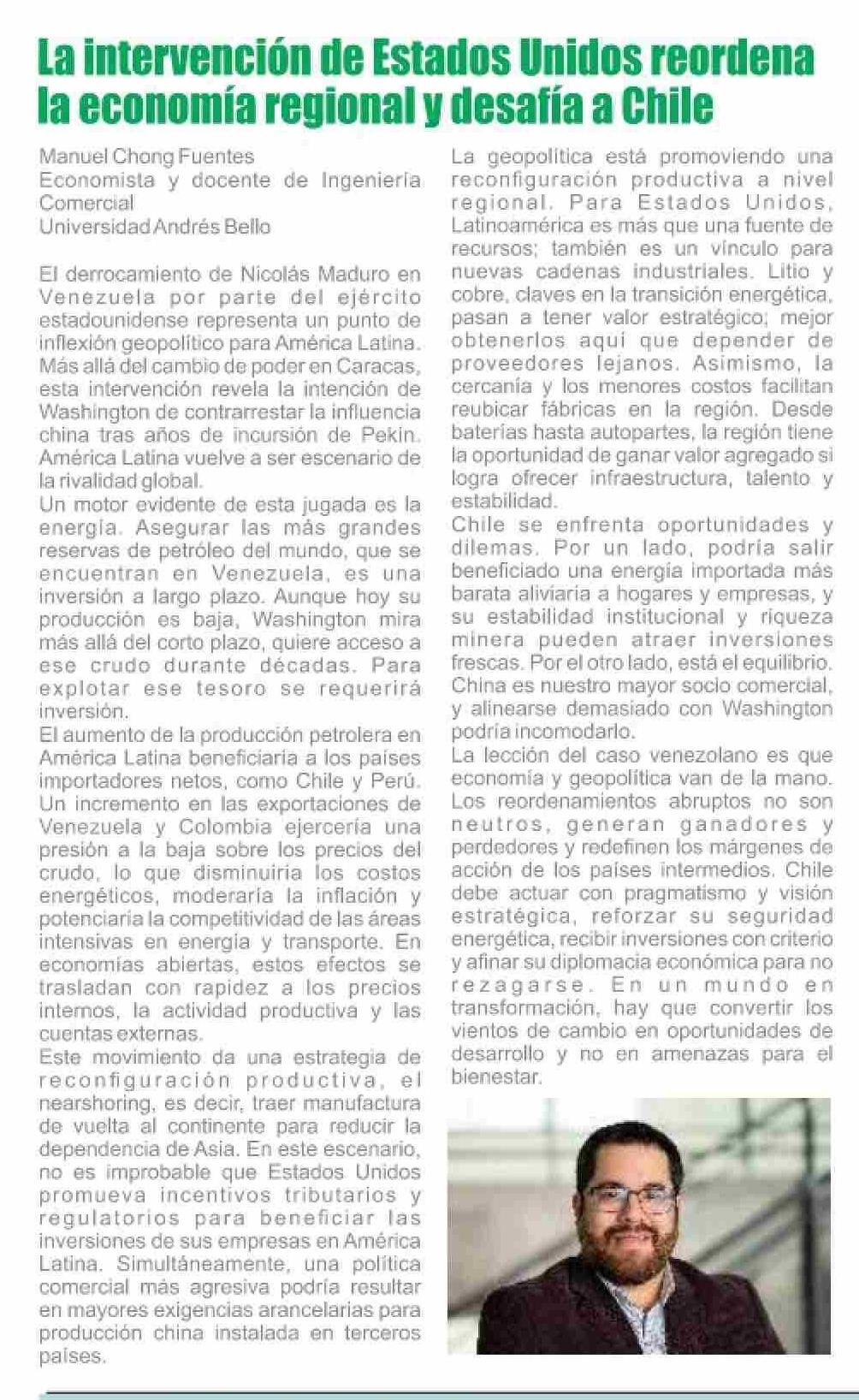 Columnas de Opinión: La intervención de Estados Unidos reordena la economía regional y desafía a Chile