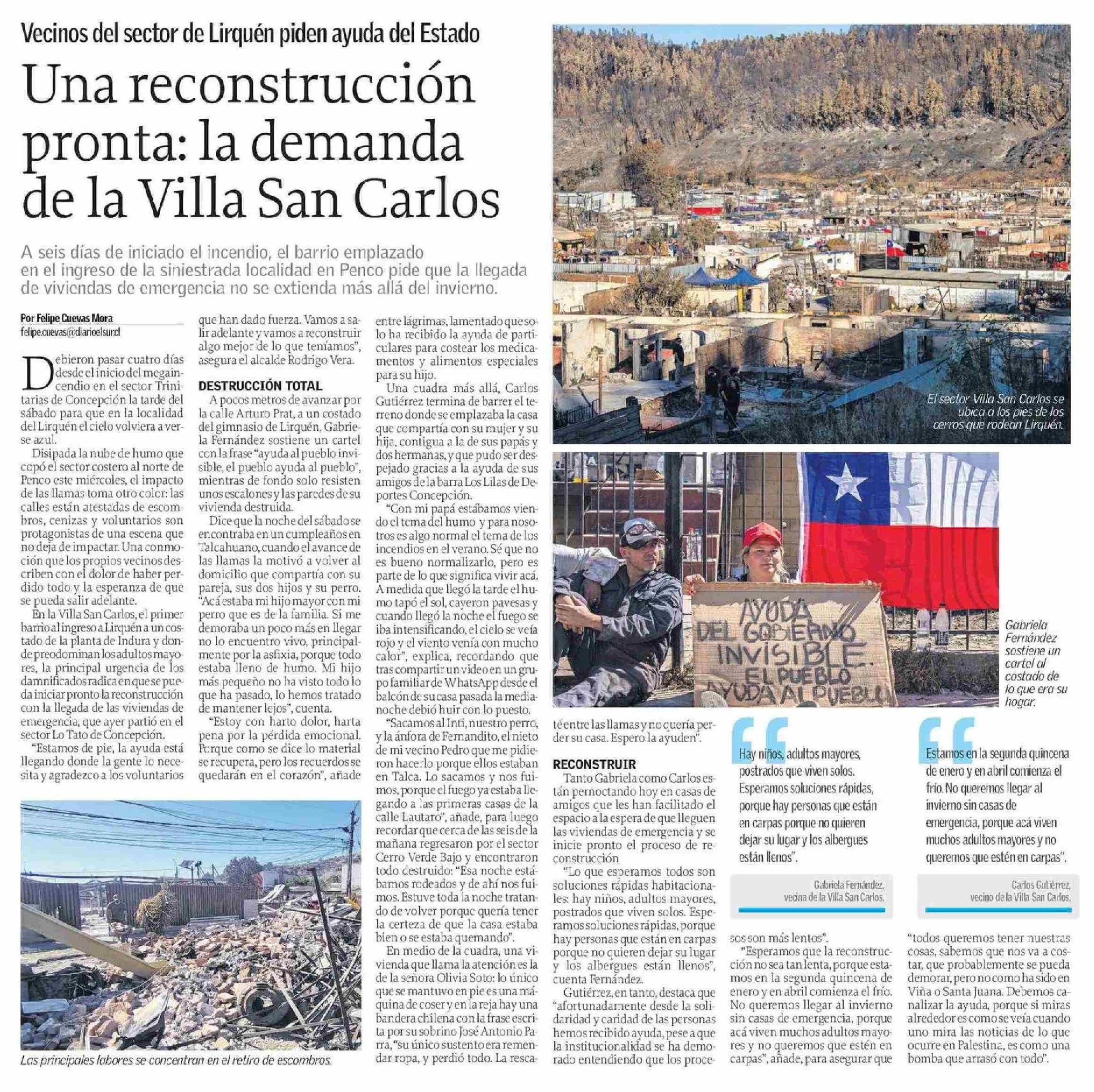 Una reconstrucción pronta: la demanda de la Villa San Carlos