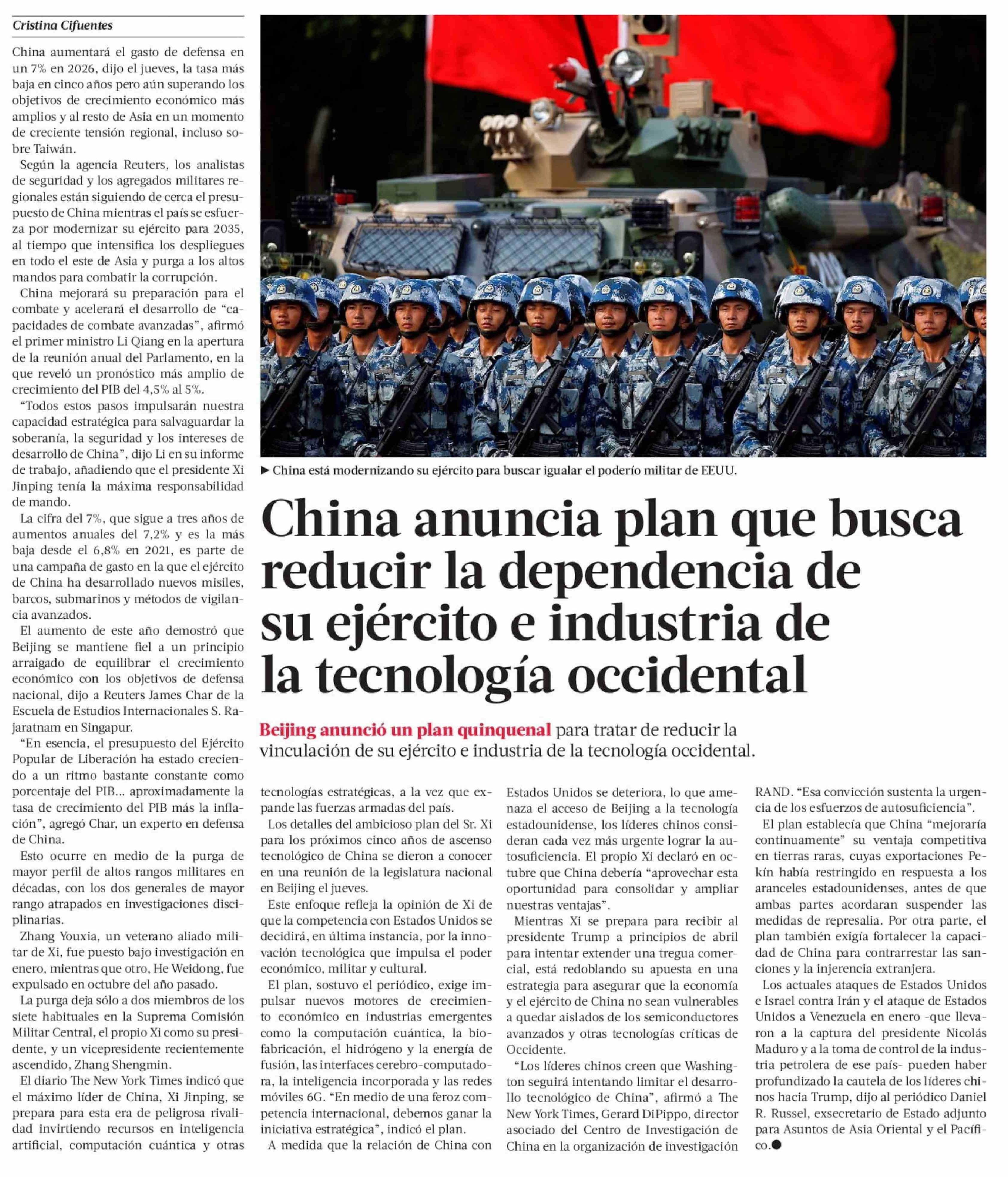 China anuncia plan que busca reducir la dependencia de su ejército e industria de la tecnología occidental