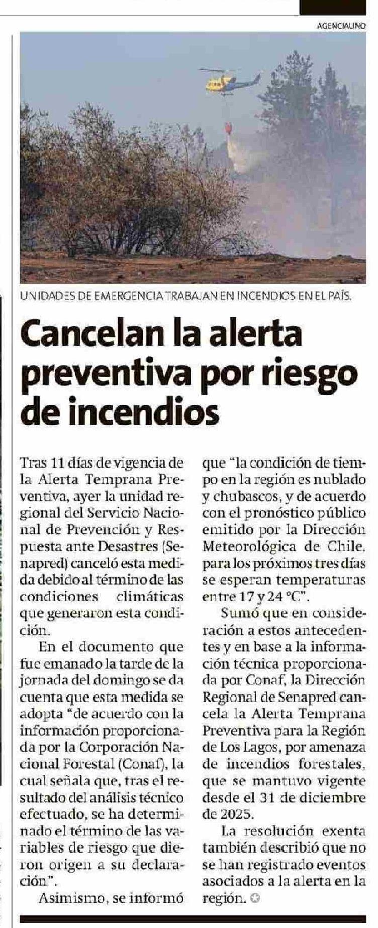 Cancelan la alerta preventiva por riesgo de incendios