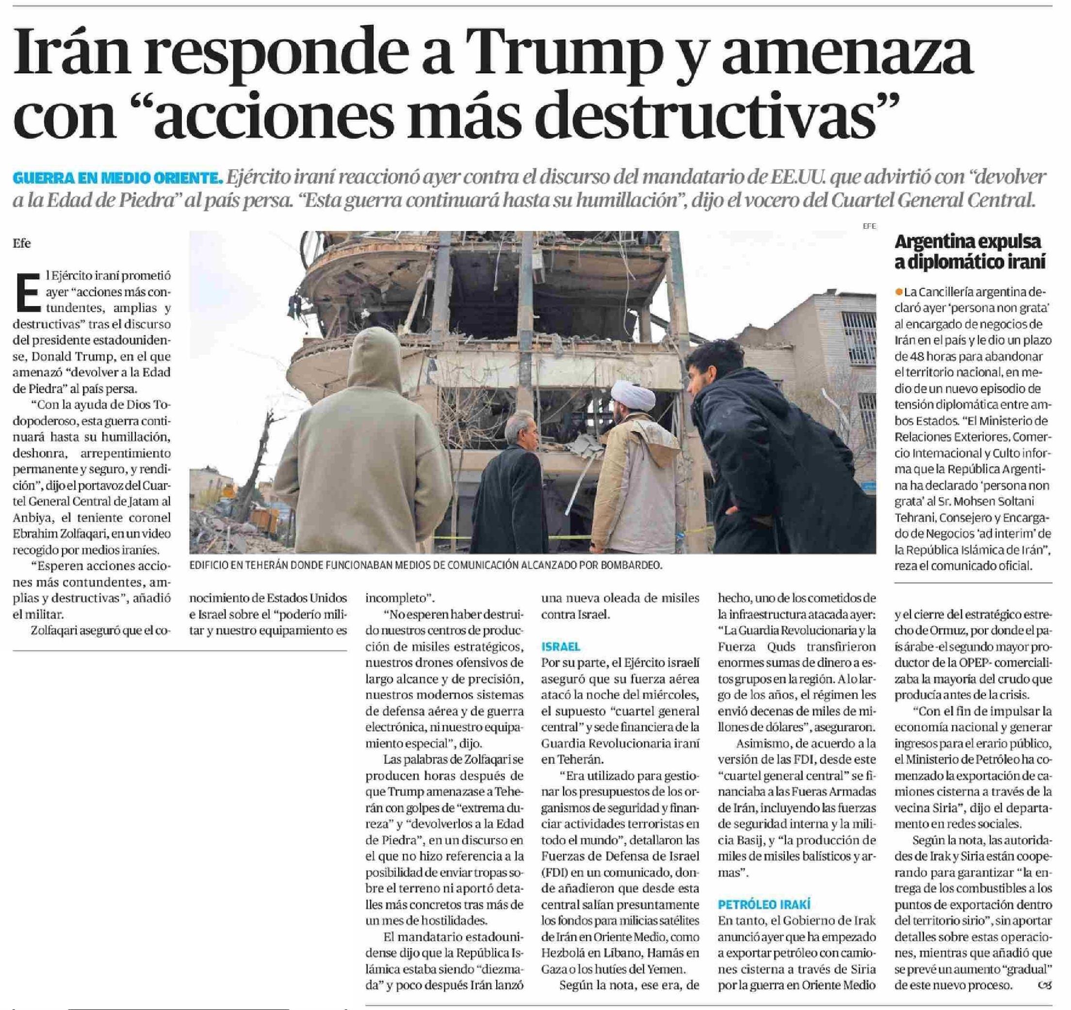Irán responde a Trump y amenaza con "acciones más destructivas"
