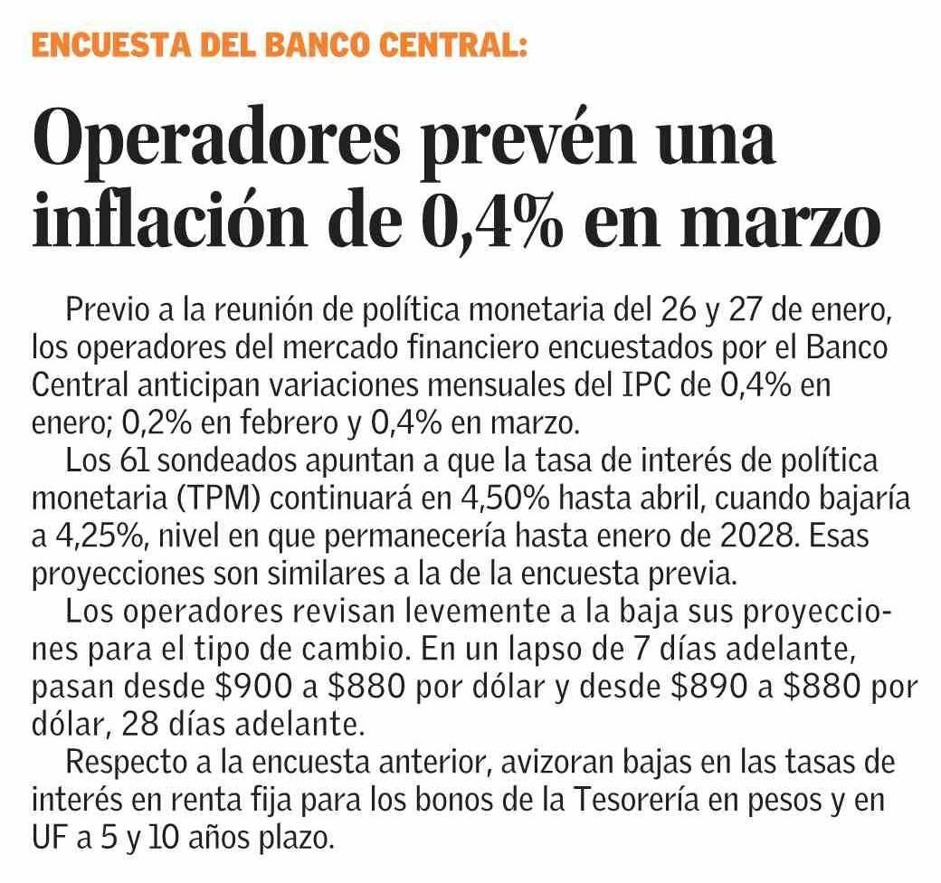 Operadores prevén una inflación de 0,4% en marzo